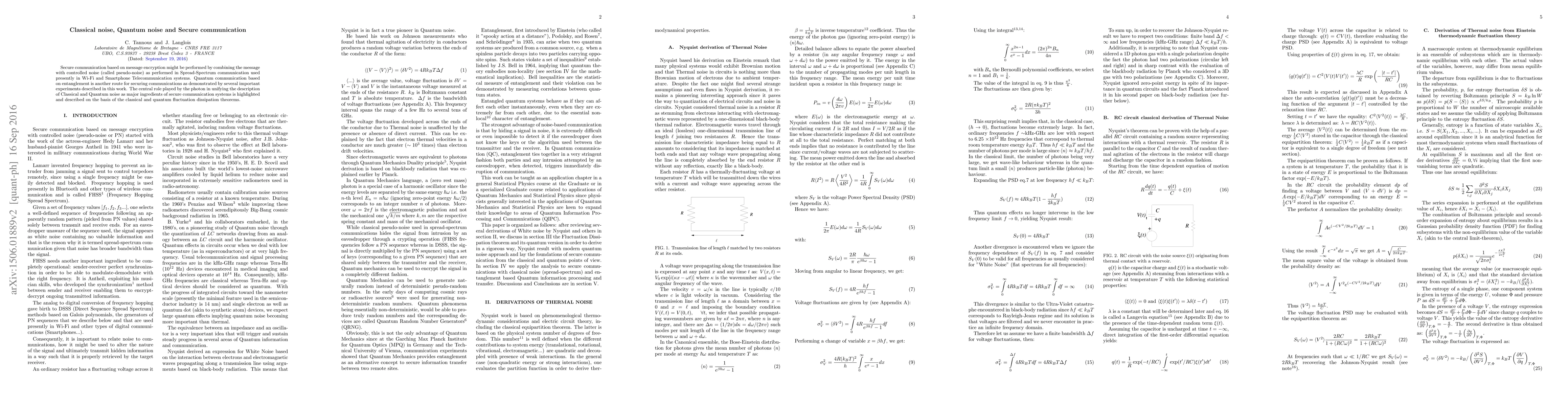This paper explores secure communication methods using both classical pseudo-noise and quantum entanglement, emphasizing the unifying role of photons in classical and quantum noise theories through the fluctuation dissipation theorems.