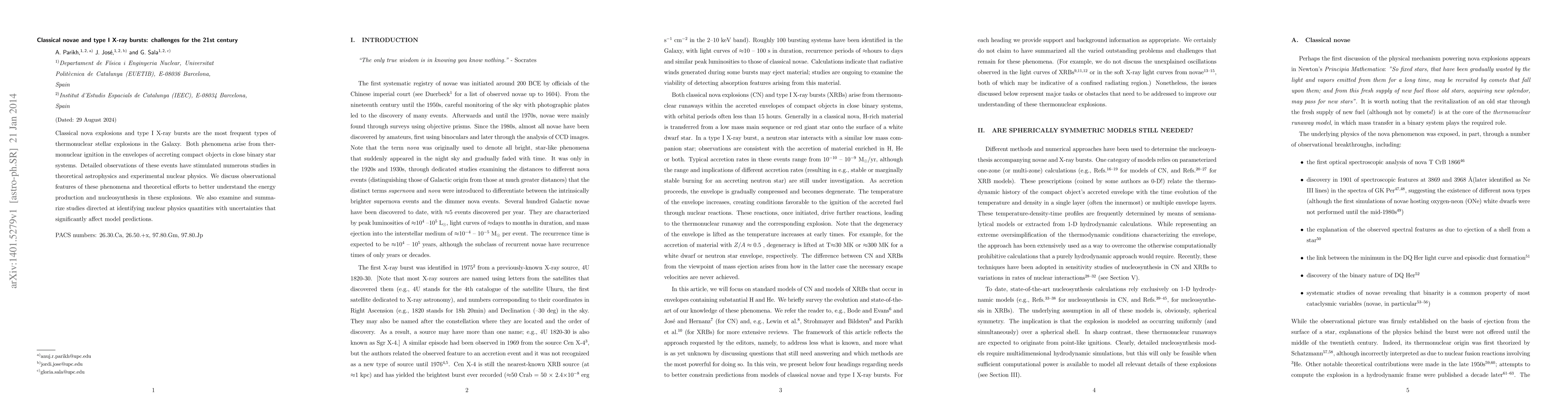 Researchers explore classical novae and type I X-ray bursts, shedding light on energy production and nucleosynthesis in these stellar explosions. They examine key findings and theoretical efforts to better understand these events, which help refine models of nuclear physics.