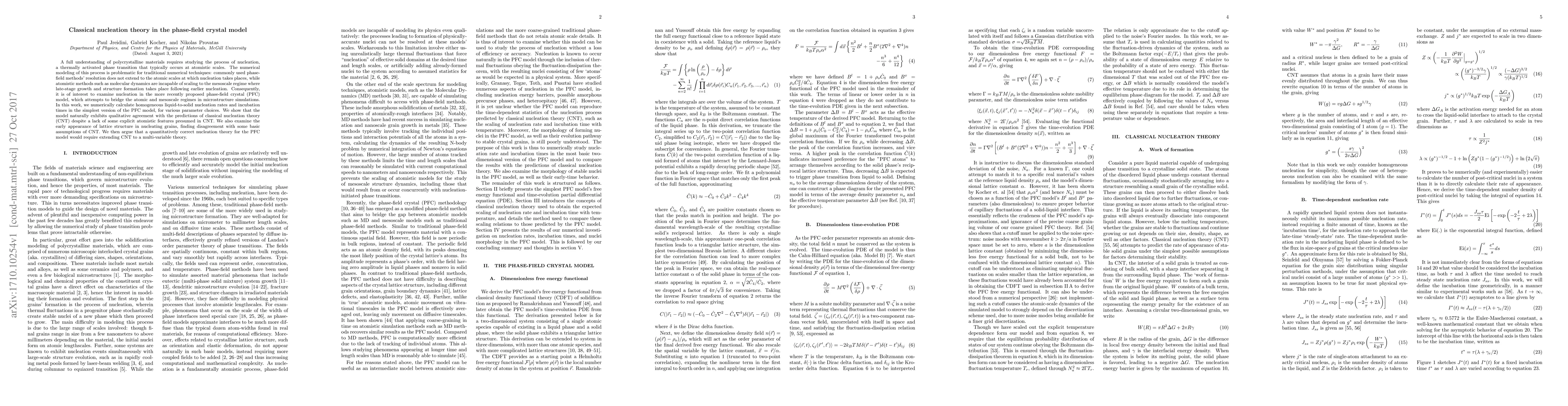 This paper investigates homogeneous liquid-to-solid nucleation rates in the phase-field crystal (PFC) model, finding qualitative agreement with classical nucleation theory (CNT). It argues that a more comprehensive multi-variable theory is needed for quantitative accuracy.