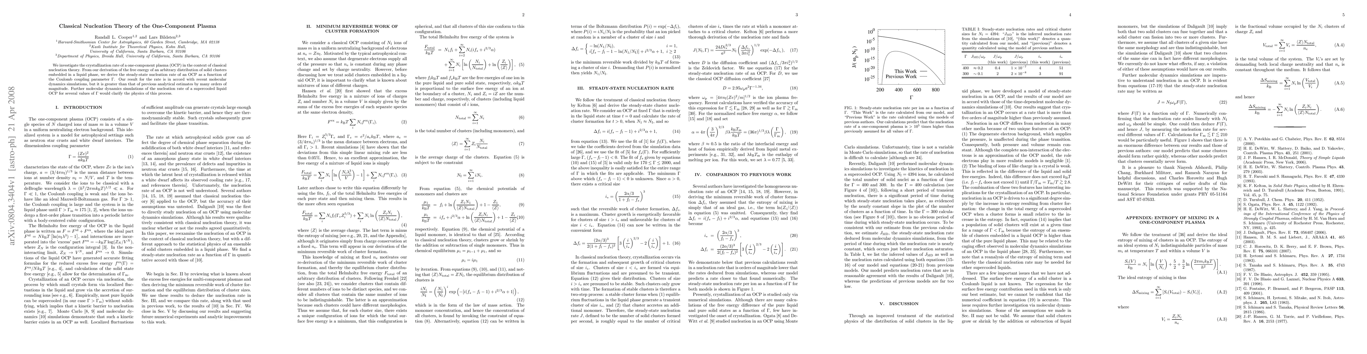 This paper derives the steady-state nucleation rate of a one-component plasma using classical nucleation theory, finding it significantly higher than previous estimates and aligning with recent molecular dynamics simulations. Further simulations are suggested to better understand the crystallization dynamics in supercooled liquid OCPs.