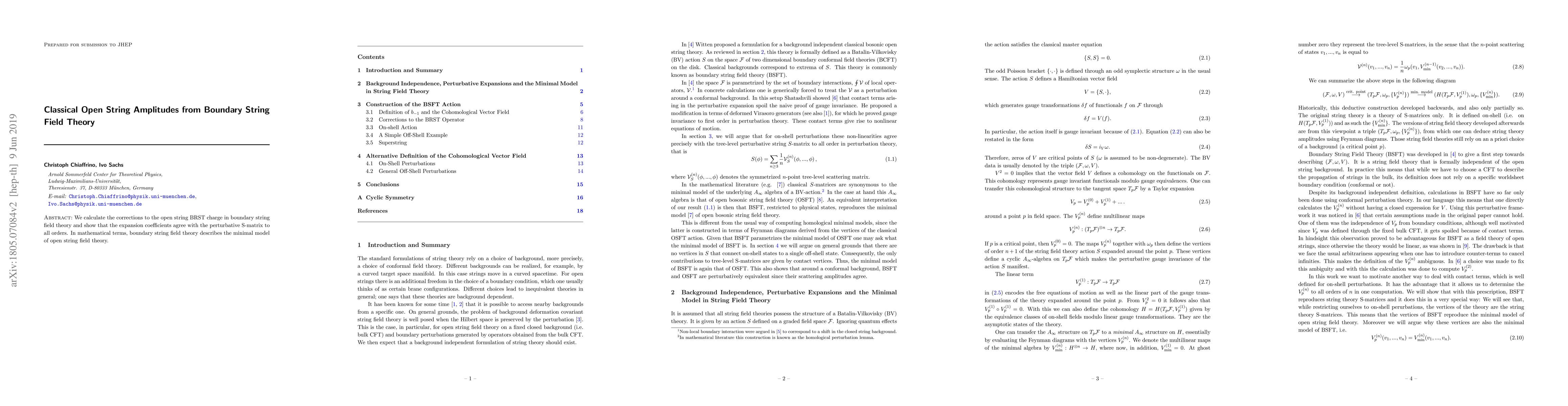 Abstract: We show that boundary string field theory realizes the minimal model of open string field theory. More precisely, we observe that the expansion of the (co)homological vector field, $Q$ of boundary string field theory in the cohomology of its linear part reproduces the S-matrices of perturbative string theory. In mathematical terms, boundary string field theory realizes the minimal model map of the cohomological perturbation lemma.