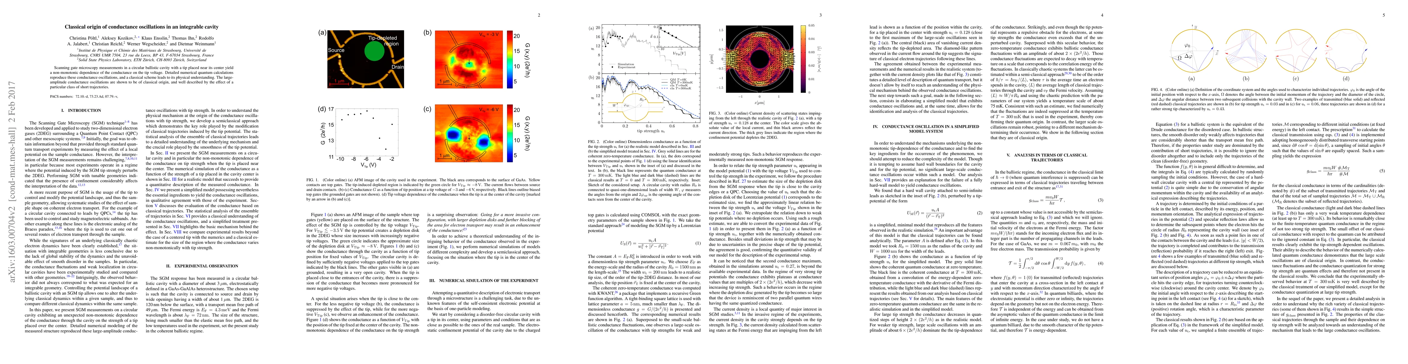 This paper investigates conductance oscillations in a ballistic cavity using scanning gate microscopy, revealing non-monotonic conductance dependence on tip voltage. Classical trajectory analysis provides insight into these oscillations, demonstrating that they originate from specific short trajectories.