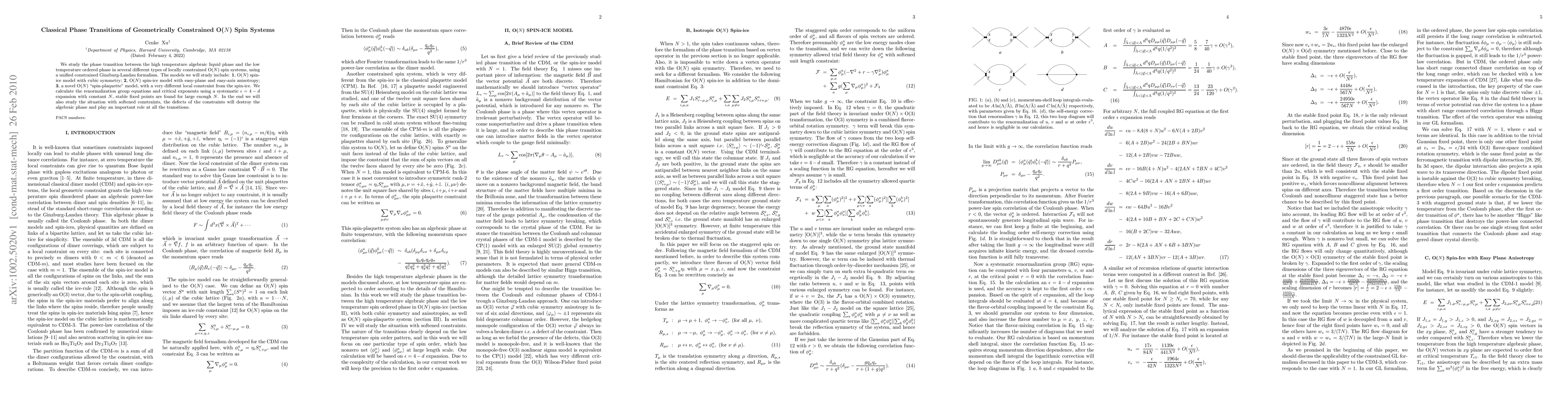 This paper investigates phase transitions in geometrically constrained O(N) spin systems, employing a unified Ginzburg-Landau formalism. It examines various models, including spin-ice and a novel spin-plaquette model, and finds stable fixed points for large N, while also considering the effects of softened constraints on phase transitions.