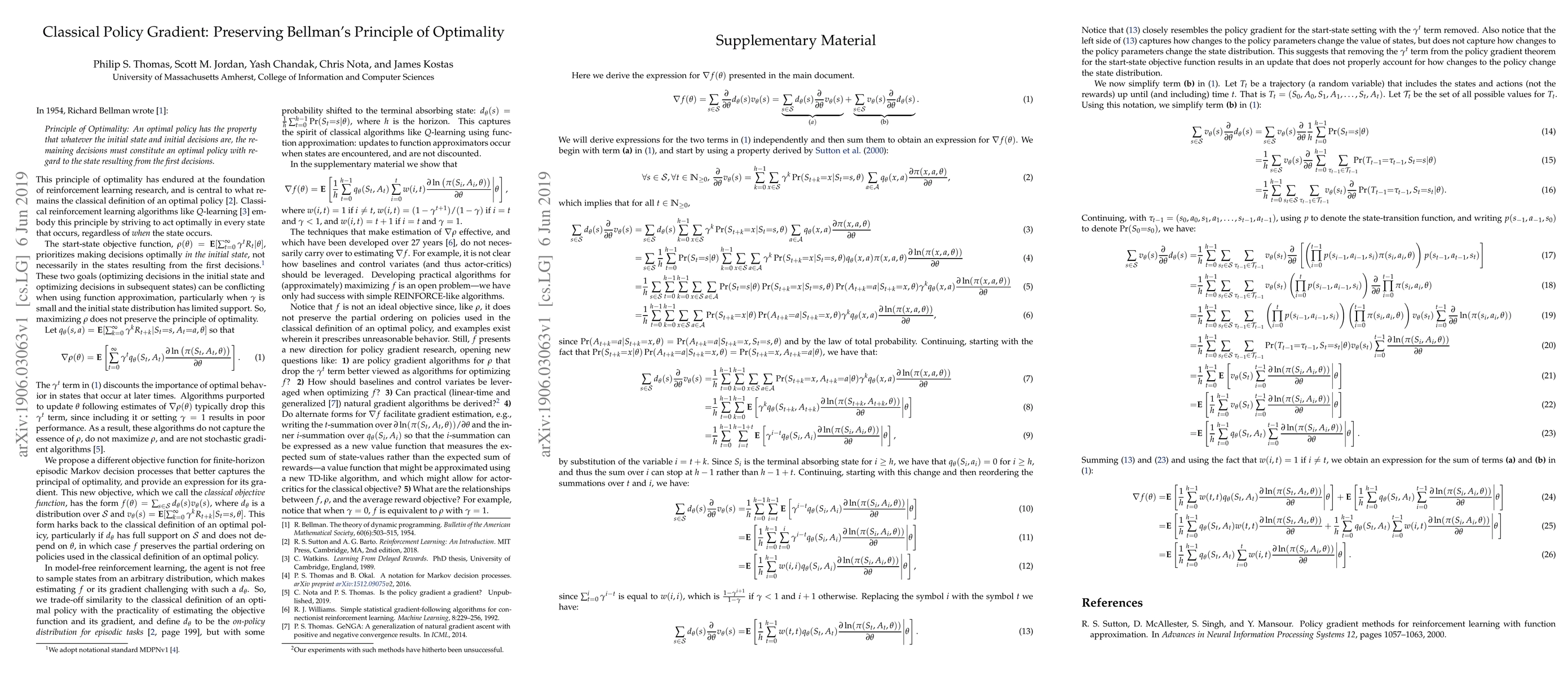 Summary: This paper introduces a novel objective function for finite-horizon episodic Markov decision processes that more accurately reflects Bellman's principle of optimality. It also presents a gradient expression for optimizing the proposed objective function.