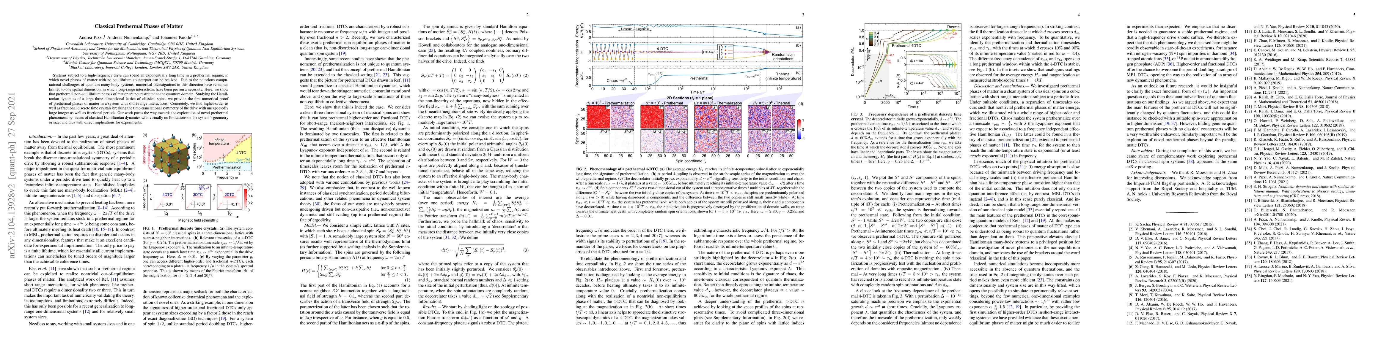 Systems subject to a high-frequency drive can spend an exponentially long time in a prethermal regime, in which novel phases of matter with no equilibrium counterpart can be realized. Due to the notorious computational challenges of quantum many-body systems, numerical investigations in this direction have remained limited to one spatial dimension, in which long-range interactions have been proven a necessity. Here, we show that prethermal non-equilibrium phases of matter are not restricted to the quantum domain. Studying the Hamiltonian dynamics of a large three-dimensional lattice of classical spins, we provide the first numerical proof of prethermal phases of matter in a system with short-range interactions. Concretely, we find higher-order as well as fractional discrete time crystals breaking the time-translational symmetry of the drive with unexpectedly large integer as well as fractional periods. Our work paves the way towards the exploration of novel prethermal phenomena by means of classical Hamiltonian dynamics with virtually no limitations on the system's geometry or size, and thus with direct implications for experiments.