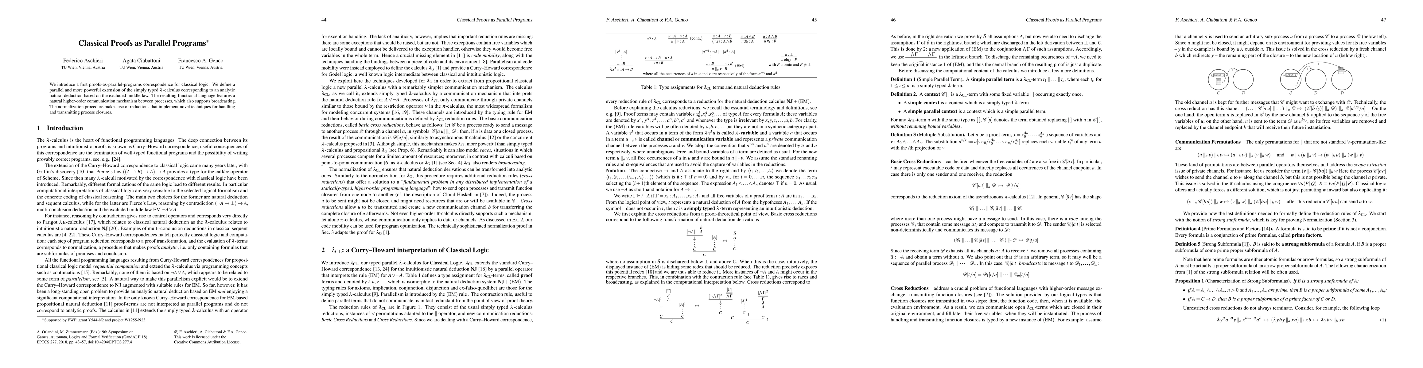 We introduce a first proofs-as-parallel-programs correspondence for classical logic. We define a parallel and more powerful extension of the simply typed lambda calculus corresponding to an analytic natural deduction based on the excluded middle law. The resulting functional language features a natural higher-order communication mechanism between processes, which also supports broadcasting. The normalization procedure makes use of reductions that implement novel techniques for handling and transmitting process closures.