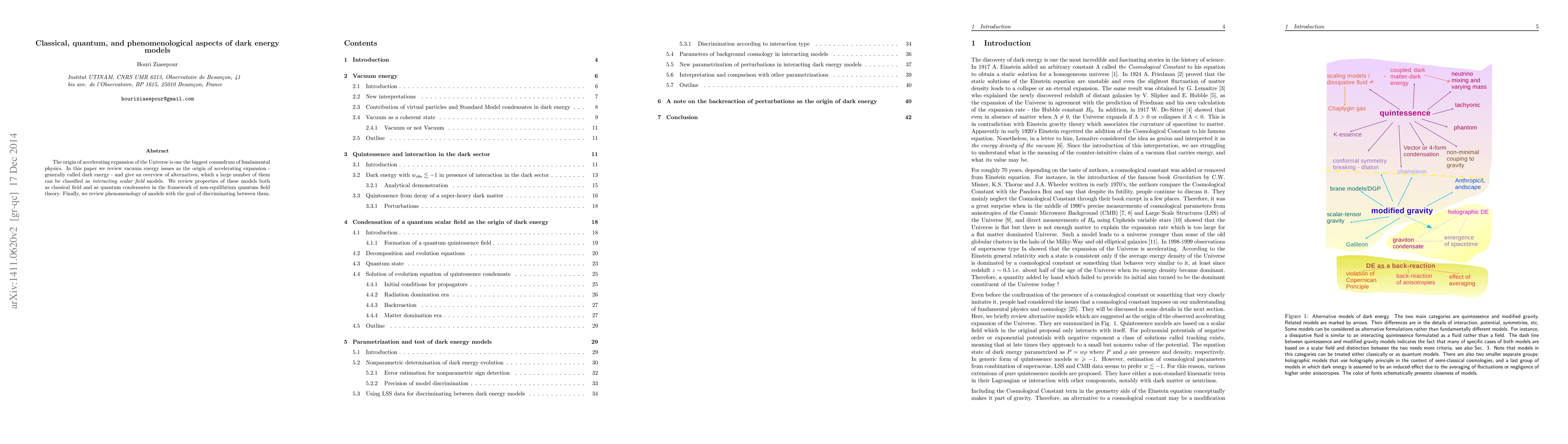 This paper reviews dark energy models, focusing on vacuum energy as the cause of the Universe's accelerating expansion. It classifies many alternatives as interacting scalar field models, examining their properties classically and quantum-mechanically. The study concludes with a phenomenological review to distinguish between these models.