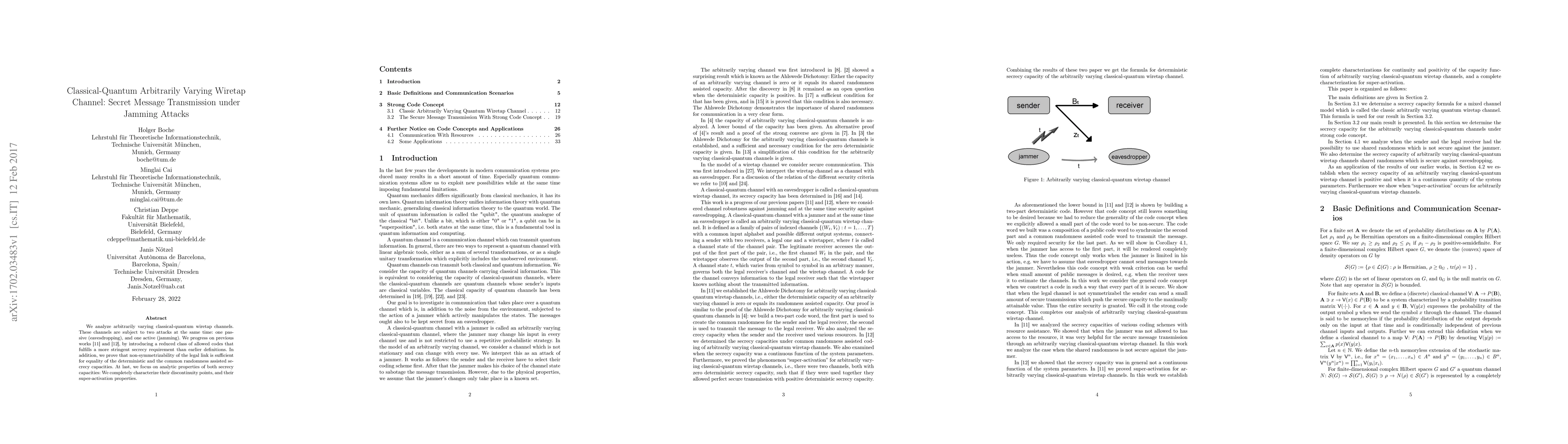 This paper explores the security of classical-quantum wiretap channels under simultaneous passive eavesdropping and active jamming attacks. It introduces a stricter secrecy requirement and proves that non-symmetrizability of the link equates the deterministic and common randomness assisted capacities, while also characterizing the discontinuity points and super-activation properties of these capacities.