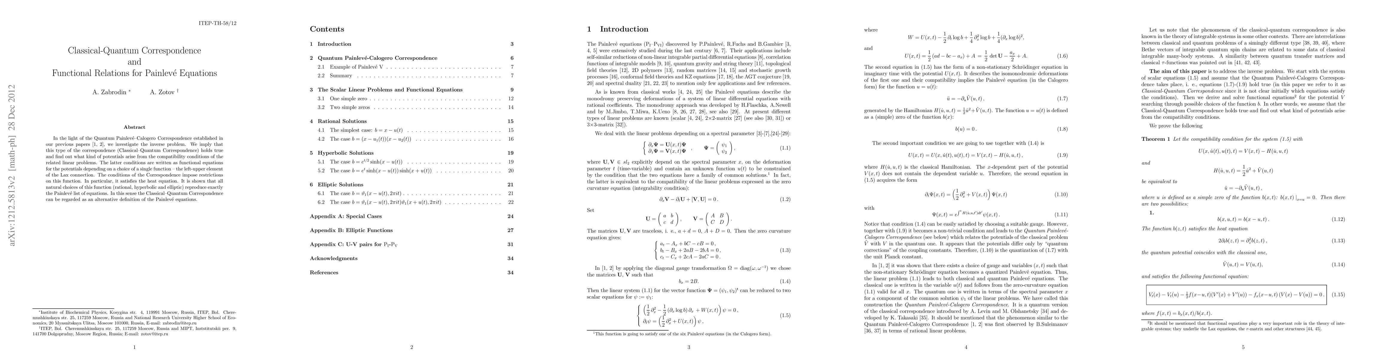 Researchers investigate a correspondence between classical and quantum equations, finding that it reproduces the Painleve list of equations for specific potential functions.