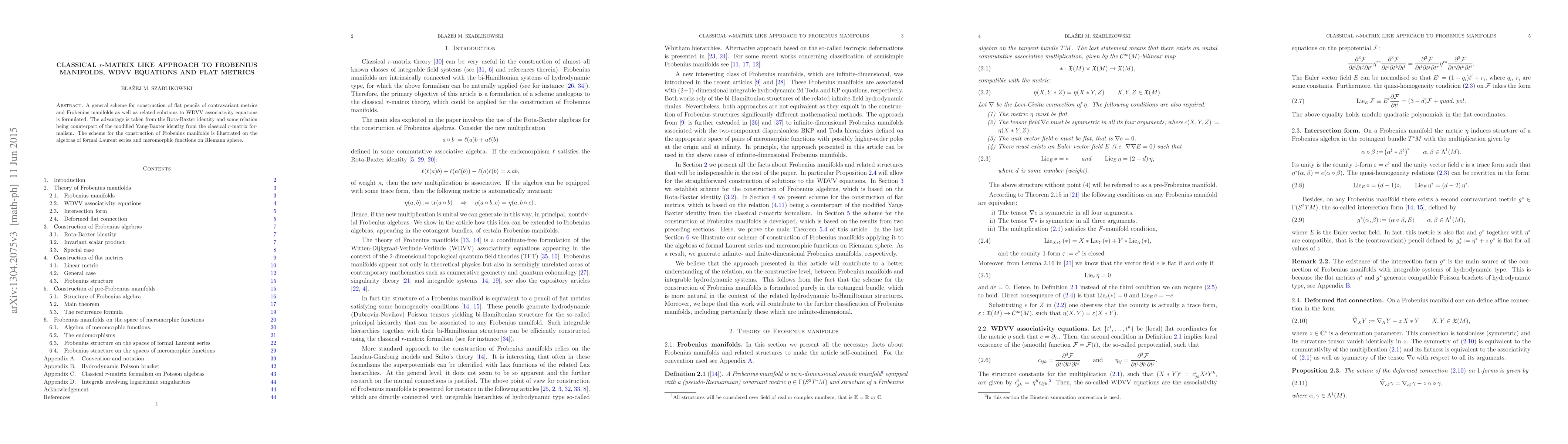 Researchers develop a method for constructing Frobenius manifolds and flat metrics using the Rota-Baxter identity, with applications to WDVV associativity equations and formal Laurent series.