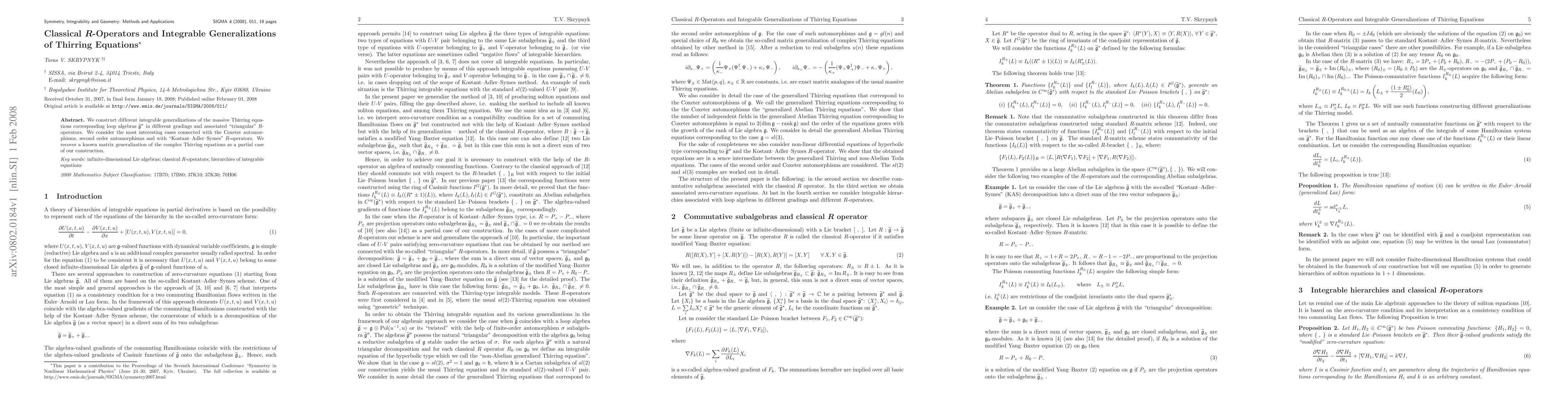 We construct different integrable generalizations of the massive Thirring equations corresponding loop algebras $\widetilde{\mathfrak{g}}^{\sigma}$ in different gradings and associated ''triangular'' $R$-operators. We consider the most interesting cases connected with the Coxeter automorphisms, second order automorphisms and with ''Kostant-Adler-Symes'' $R$-operators. We recover a known matrix generalization of the complex Thirring equations as a partial case of our construction.