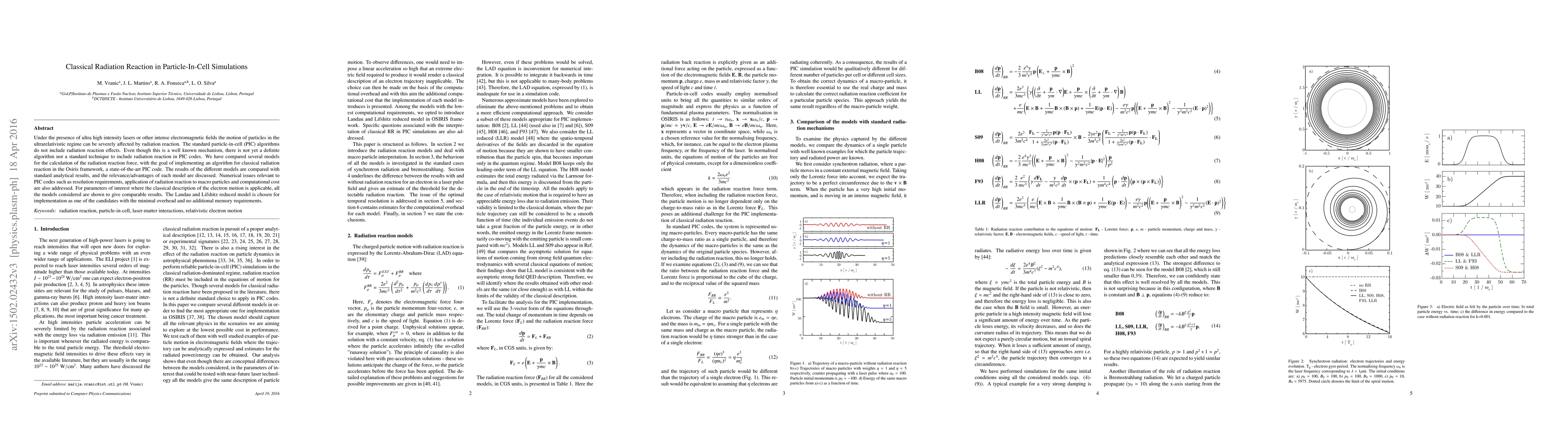 This paper investigates various models for incorporating classical radiation reaction into particle-in-cell (PIC) simulations, aiming to enhance the Osiris PIC framework. The study compares these models against analytical results and concludes with the selection of the Landau and Lifshitz reduced model for implementation, addressing computational costs and numerical resolution issues.