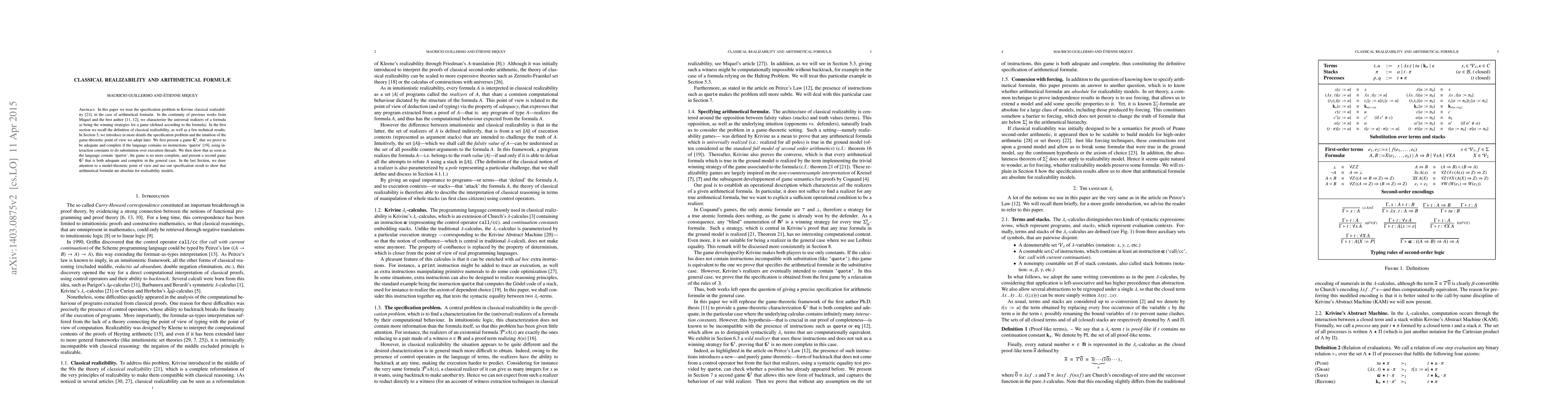 This paper explores the classical realizability of arithmetical formulas, characterizing universal realizers as winning strategies in a game-theoretic framework. It introduces two games, $G_1$ and $G_2$, to address the specification problem, demonstrating their adequacy and completeness under different language constraints.