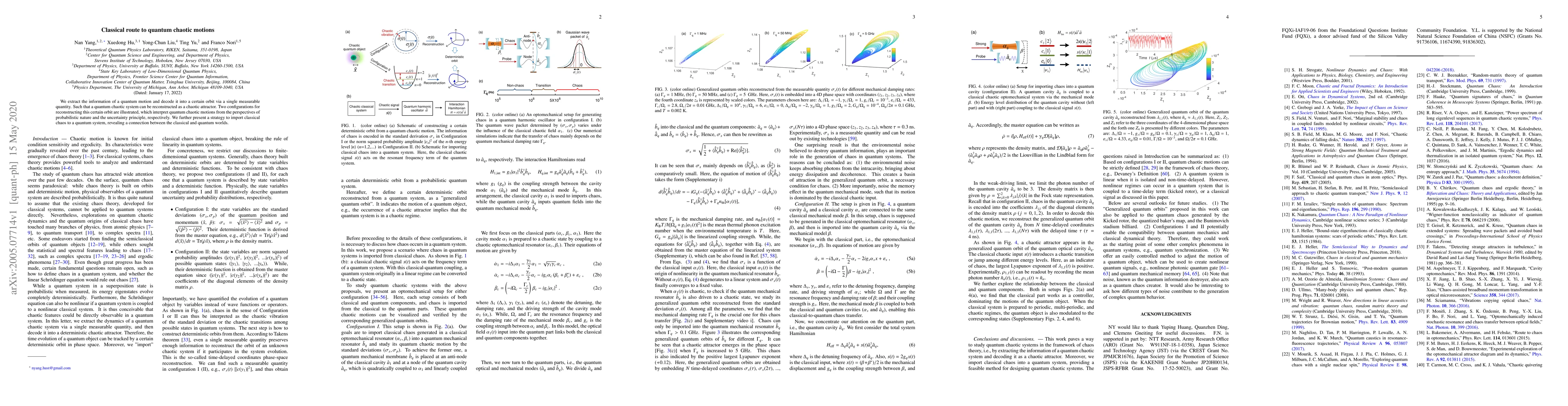 We extract the information of a quantum motion and decode it into a certain orbit via a single measurable quantity. Such that a quantum chaotic system can be reconstructed as a chaotic attractor. Two configurations for reconstructing this certain orbit are illustrated, which interpret quantum chaotic motions from the perspectives of probabilistic nature and the uncertainty principle, respectively. We further present a strategy to import classical chaos to a quantum system, revealing a connection between the classical and quantum worlds.