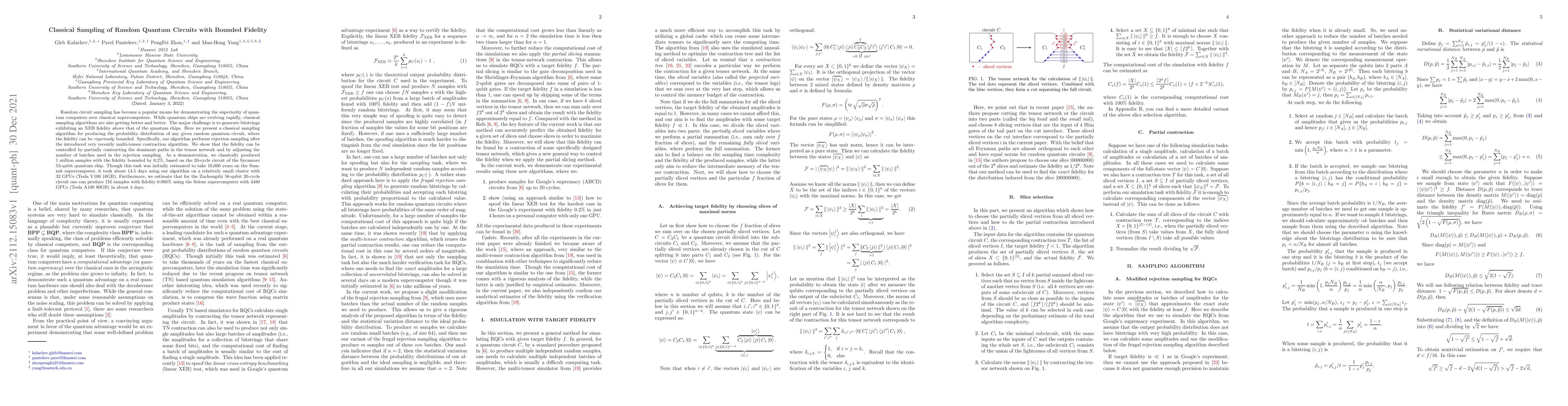 This paper presents a classical sampling algorithm that efficiently generates the probability distribution of random quantum circuits with bounded fidelity, significantly reducing the computational time compared to previous estimates. The algorithm employs rejection sampling and a multi-tensor contraction method, achieving a fidelity of 0.2% for a 53-qubit quantum circuit in 14.5 days using 32 GPUs.