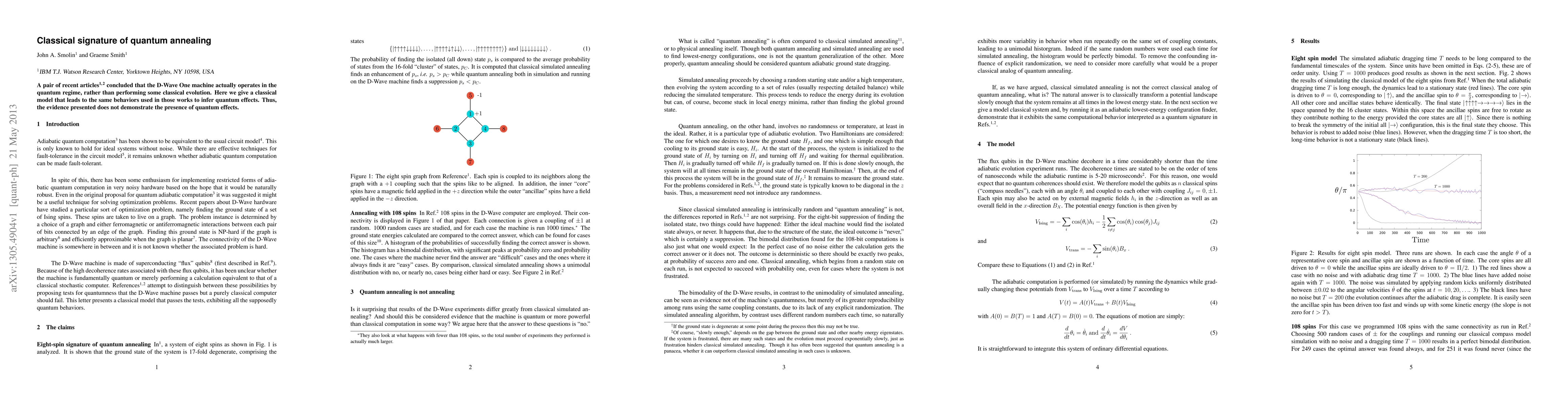 A pair of recent articles concluded that the D-Wave One machine actually operates in the quantum regime, rather than performing some classical evolution. Here we give a classical model that leads to the same behaviors used in those works to infer quantum effects. Thus, the evidence presented does not demonstrate the presence of quantum effects.