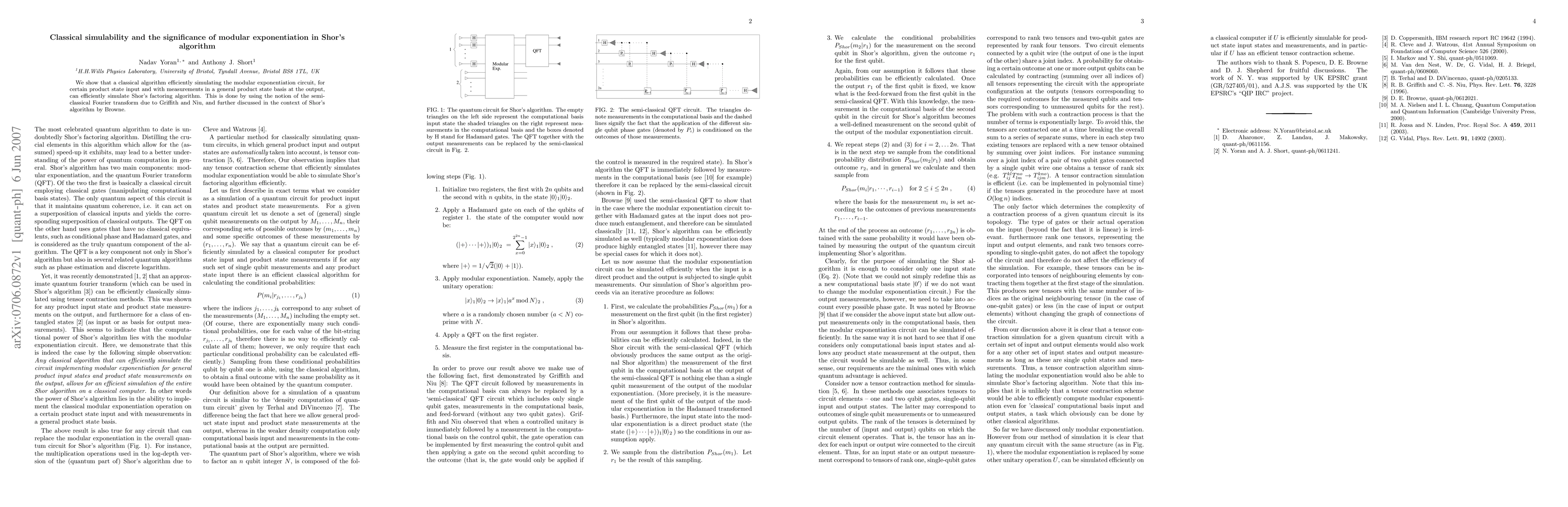 Summary: This paper demonstrates that a classical algorithm can efficiently simulate Shor's algorithm by efficiently simulating the modular exponentiation circuit, utilizing the semi-classical Fourier transform, which highlights the importance of this component in quantum factoring.