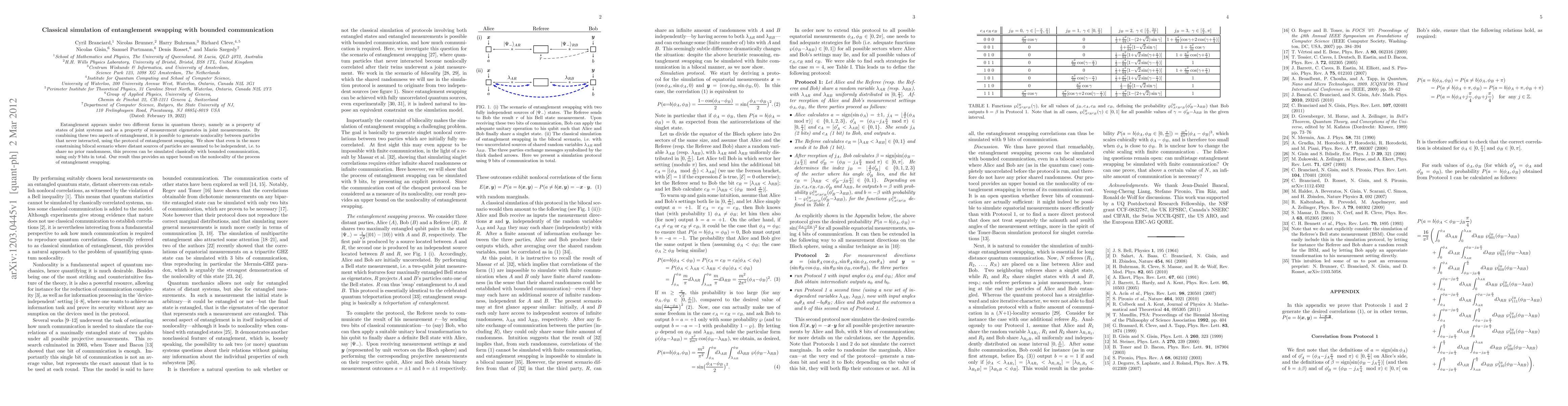 This paper demonstrates that entanglement swapping, a quantum protocol generating nonlocality, can be simulated classically with minimal communication, using only 9 bits, even when no prior randomness is shared between distant particle sources. This result sets an upper limit on the nonlocality achievable through entanglement swapping.