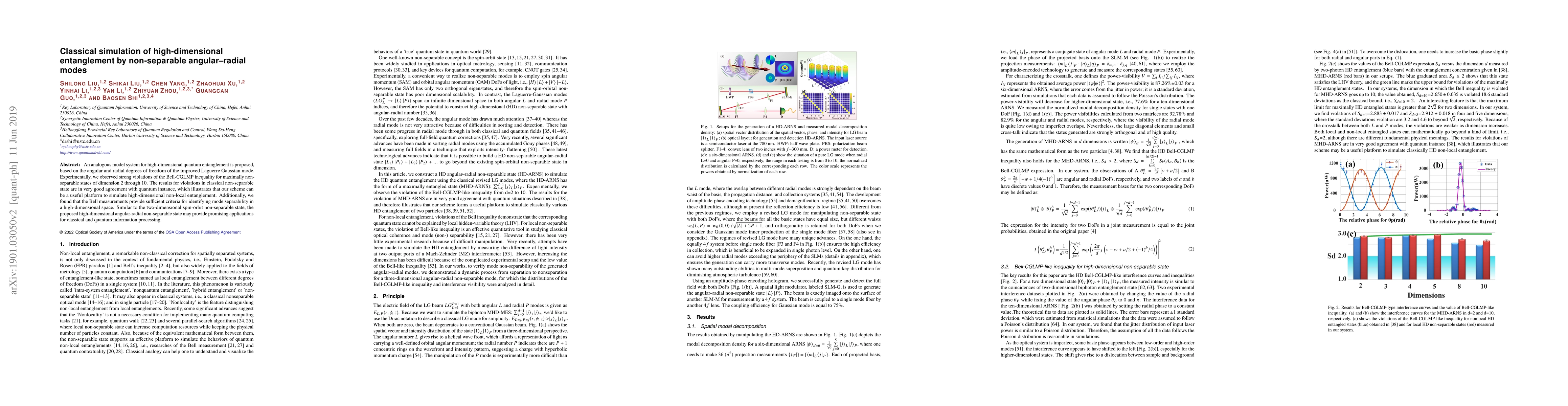 Researchers proposed a model to simulate high-dimensional entanglement using angular-radial modes, showing strong violations of the Bell-CGLMP inequality in non-separable states. The findings suggest this method can be used to study classical and quantum information processing.