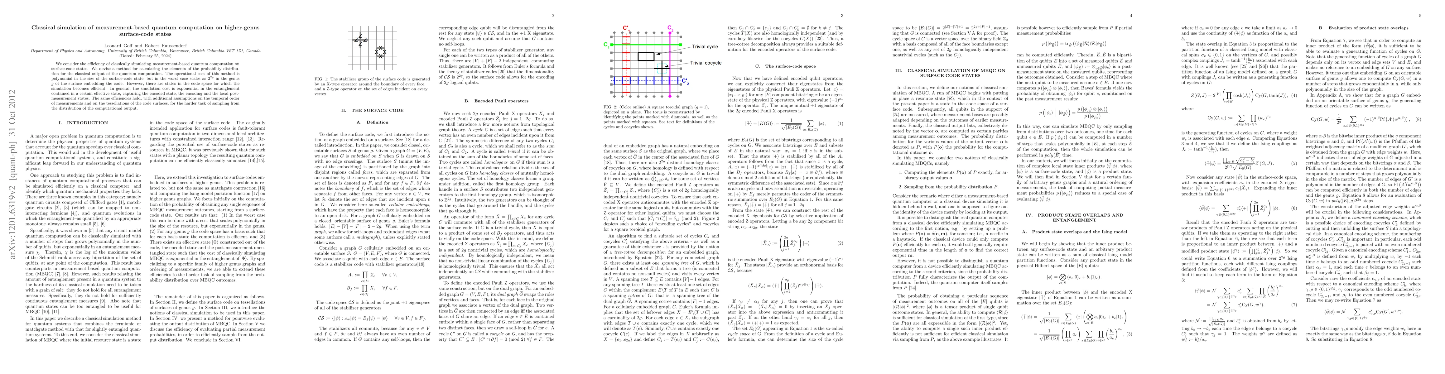 The research employs a method for calculating the elements of the probability distribution for the classical output of measurement-based quantum computation on surface-code states, with a polynomial cost in the size of the surface-code state but worst-case scaling of $2^{2g}$ in the genus $g$ of the surface embedding the code.