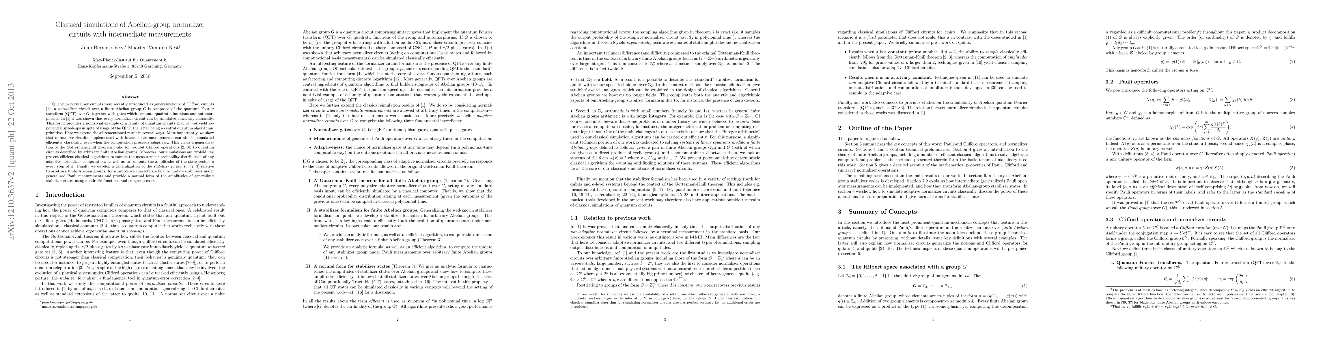 This paper demonstrates that quantum normalizer circuits over finite Abelian groups, including those with intermediate measurements, can be efficiently simulated classically. It extends the Gottesman-Knill theorem to adaptive normalizer circuits and provides algorithms for sampling measurement distributions and computing state vector amplitudes.