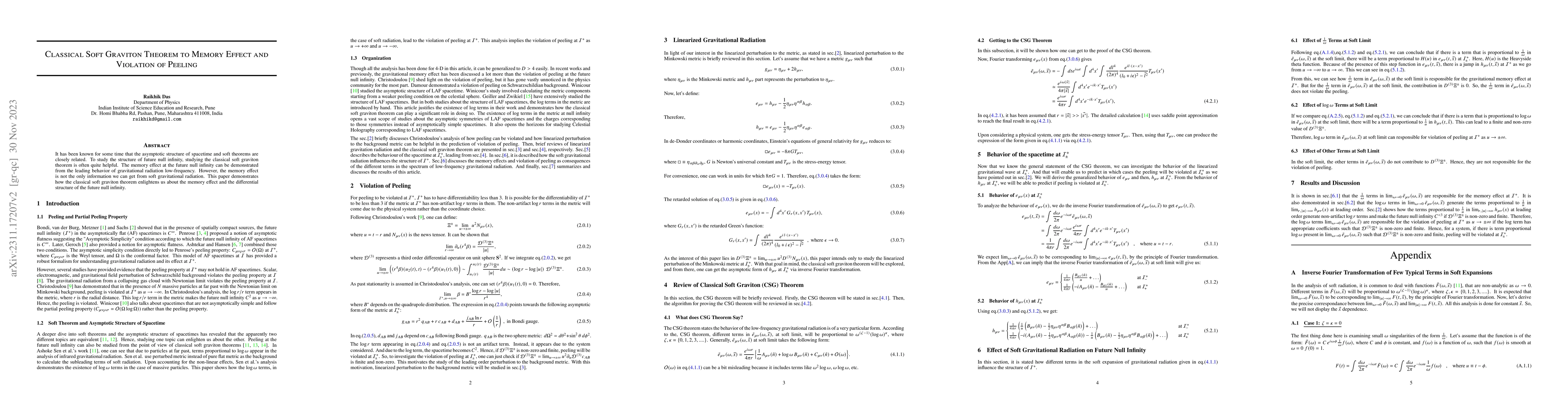 This paper explores the classical soft graviton theorem's role in elucidating the memory effect at future null infinity, derived from the leading behavior of low-frequency gravitational radiation, and discusses how it also reveals insights into the differential structure of future null infinity, challenging the peeling theorem's conventional understanding.