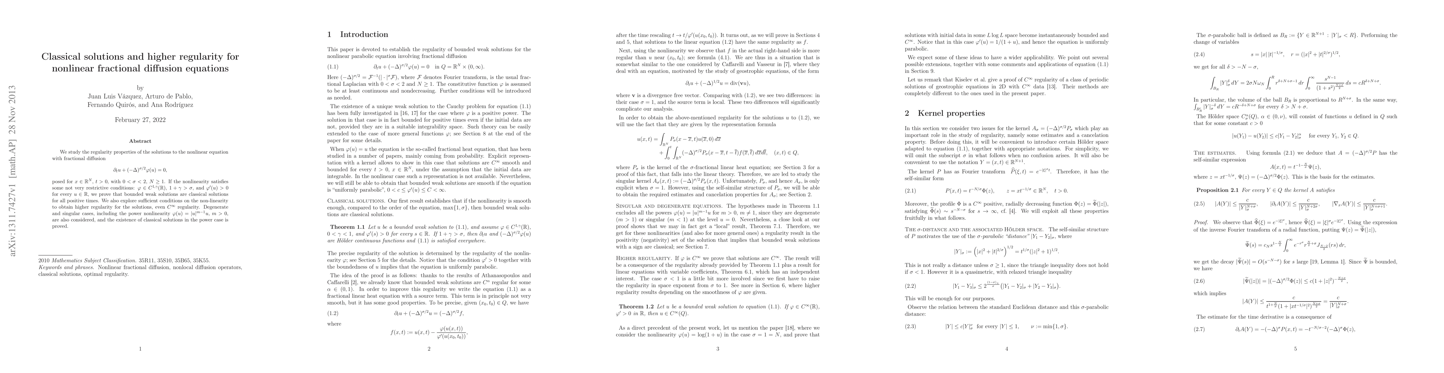 We study the regularity properties of the solutions to the nonlinear equation with fractional diffusion $$ \partial_tu+(-\Delta)^{\sigma/2}\varphi(u)=0, $$ posed for $x\in \mathbb{R}^N$, $t>0$, with $0<\sigma<2$, $N\ge1$. If the nonlinearity satisfies some not very restrictive conditions: $\varphi\in C^{1,\gamma}(\mathbb{R})$, $1+\gamma>\sigma$, and $\varphi'(u)>0$ for every $u\in\mathbb{R}$, we prove that bounded weak solutions are classical solutions for all positive times. We also explore sufficient conditions on the non-linearity to obtain higher regularity for the solutions, even $C^\infty$ regularity. Degenerate and singular cases, including the power nonlinearity $\varphi(u)=|u|^{m-1}u$, $m>0$, are also considered, and the existence of classical solutions in the power case is proved.