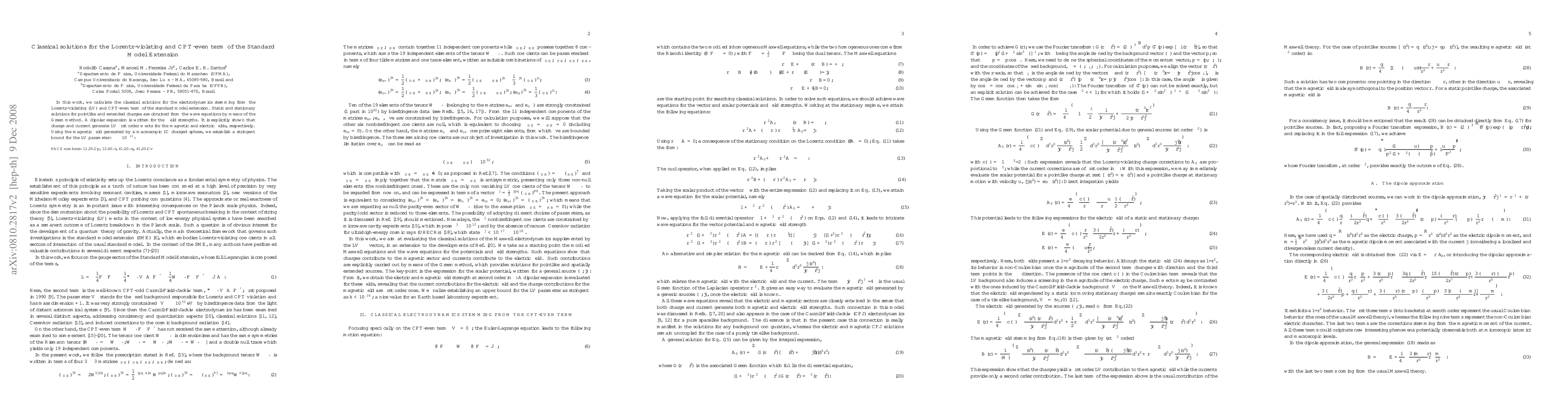 This paper calculates classical solutions for electrodynamics with Lorentz-violating and CPT-even terms from the Standard Model Extension, deriving effects from point-like and extended charges. It establishes a stringent bound of $\kappa \leq 10^{-16}$ for the Lorentz-violating parameter using a macroscopic charged sphere.