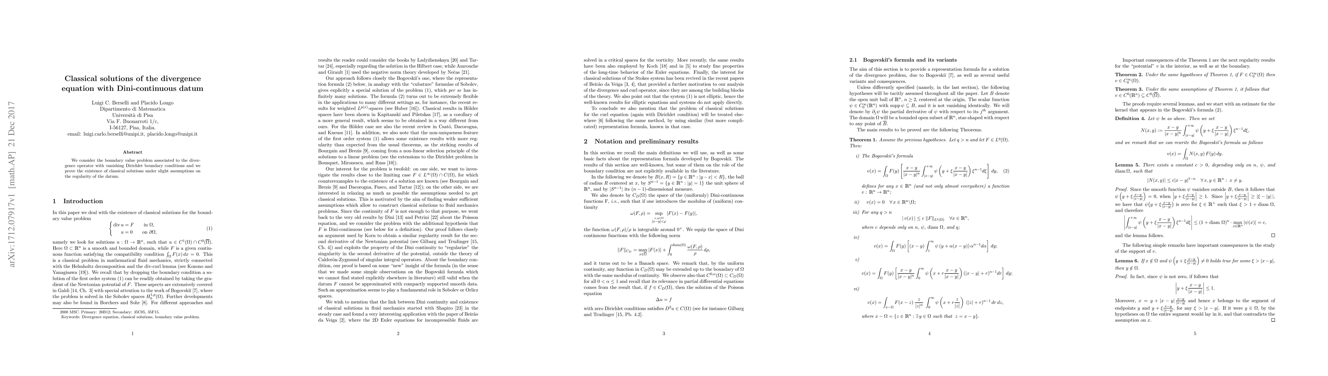 We consider the boundary value problem associated to the divergence operator with vanishing Dirichlet boundary conditions and we prove the existence of classical solutions under slight assumptions on the regularity of the datum.
