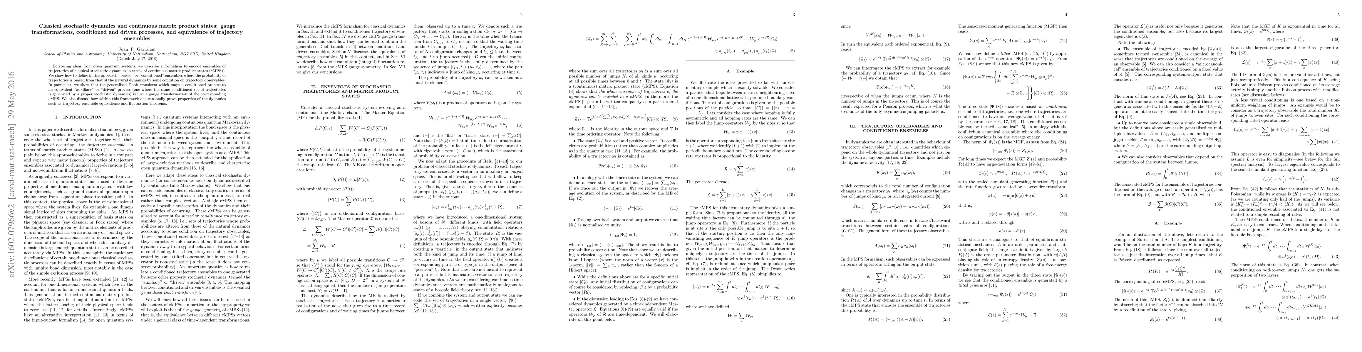 Researchers develop a formalism to encode classical stochastic dynamics into continuous matrix product states (cMPSs), enabling the study of biased or conditioned ensembles of trajectories and their equivalence to natural dynamics.