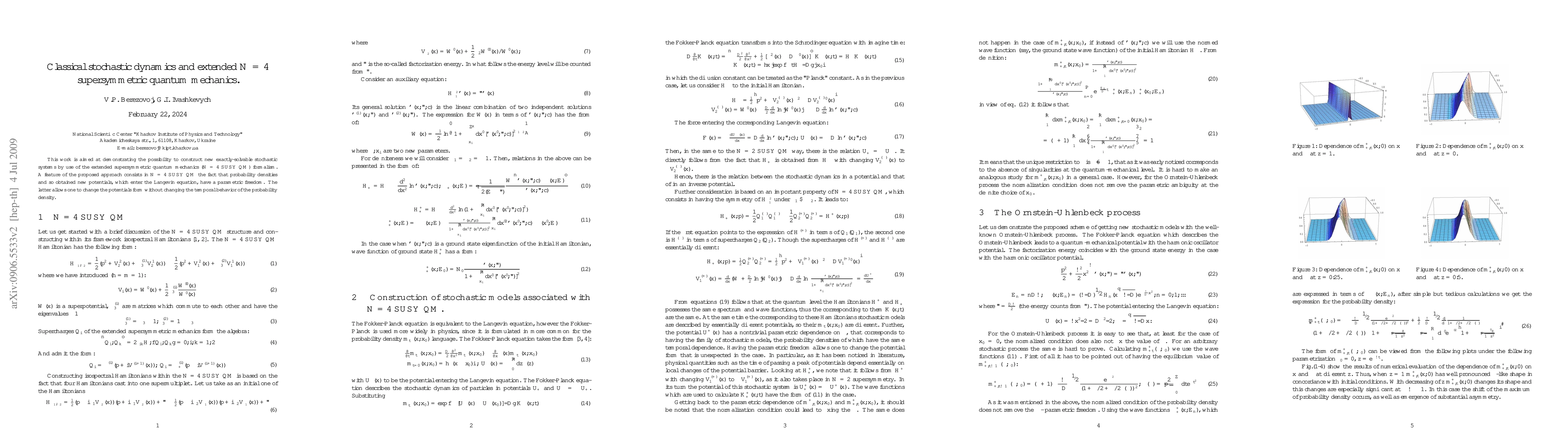 This work is aimed at demonstrating the possibility to construct new exactly-solvable stochastic systems by use of the extended supersymmetric quantum mechanics ($N=4 SUSY QM$) formalism. A feature of the proposed approach consists in $N=4 SUSY QM$ the fact that probability densities and so obtained new potentials, which enter the Langevin equation, have a parametric freedom. The latter allows one to change the potentials form without changing the temporal behavior of the dispersion function.