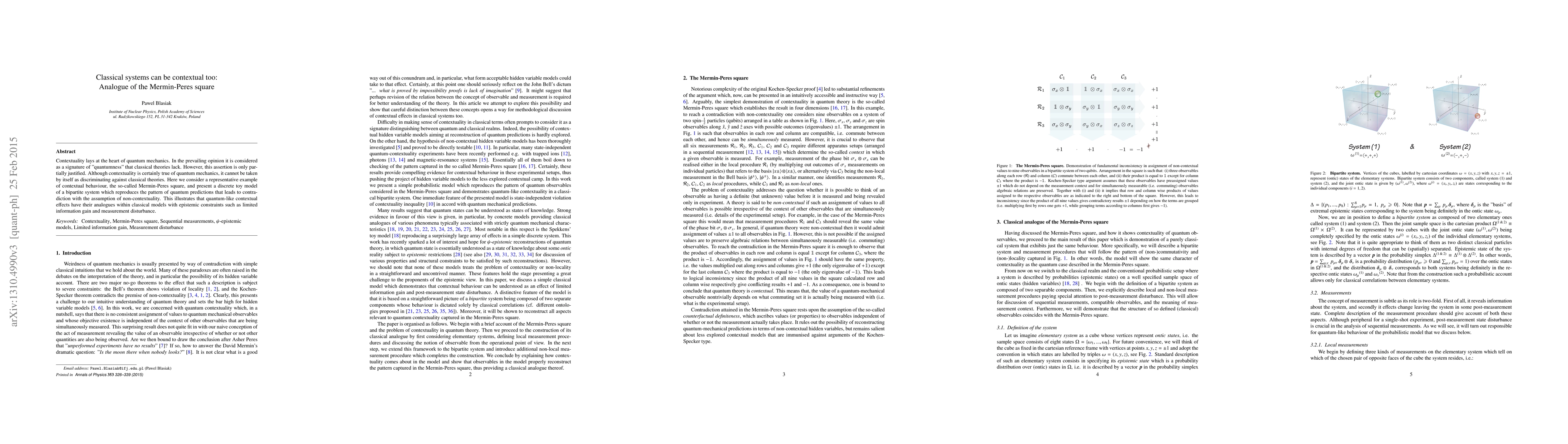 This paper demonstrates that classical systems can exhibit contextual behavior akin to quantum systems, using the Mermin-Peres square as a case study. It presents a classical model that mimics quantum predictions, suggesting that contextuality is not exclusive to quantum mechanics.