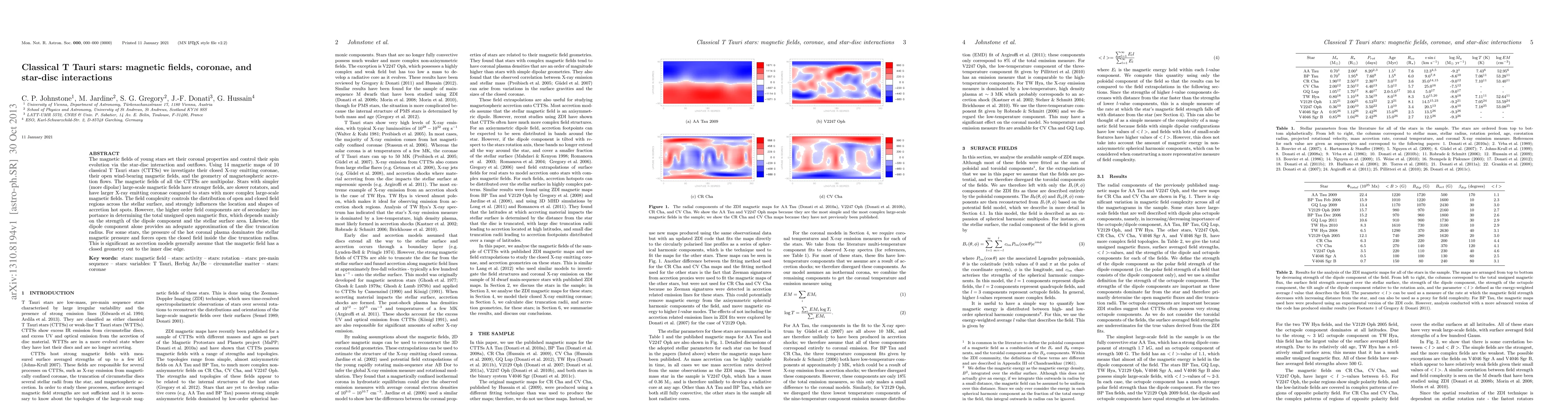 This paper investigates the magnetic fields of classical T Tauri stars (CTTSs), finding that multipolar fields shape their coronae and spin evolution through star-disc interactions. Stars with simpler, more dipolar magnetic fields exhibit stronger fields, slower rotation, and larger X-ray coronae, while field complexity influences accretion hot spot locations.