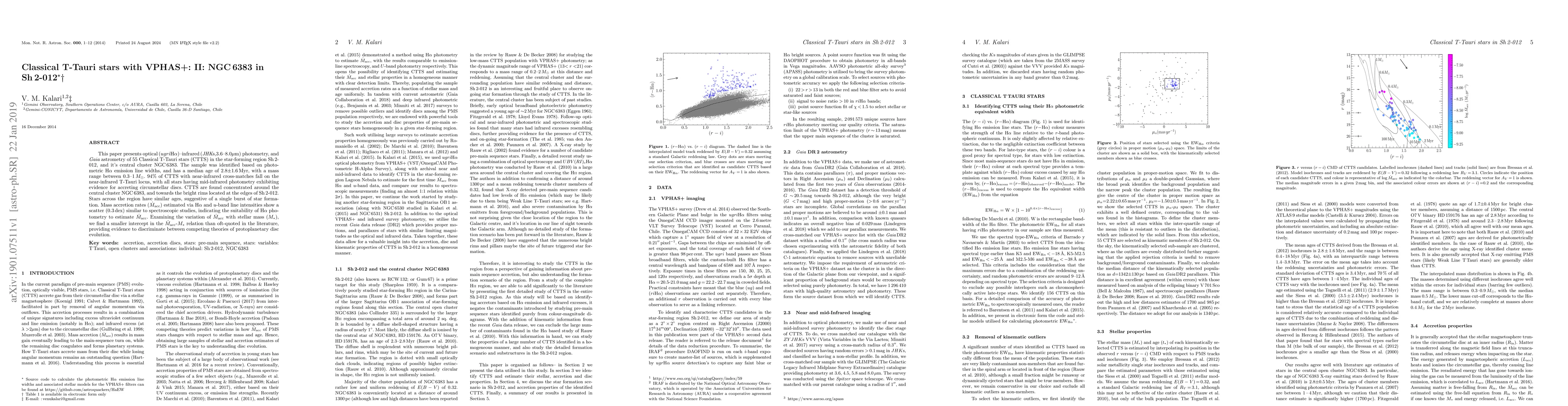 This paper analyzes 55 Classical T-Tauri stars in the Sh 2-012 region and NGC 6383 cluster, using optical and infrared photometry, and Gaia astrometry. The stars show evidence of accreting circumstellar discs and suggest a single burst of star formation.