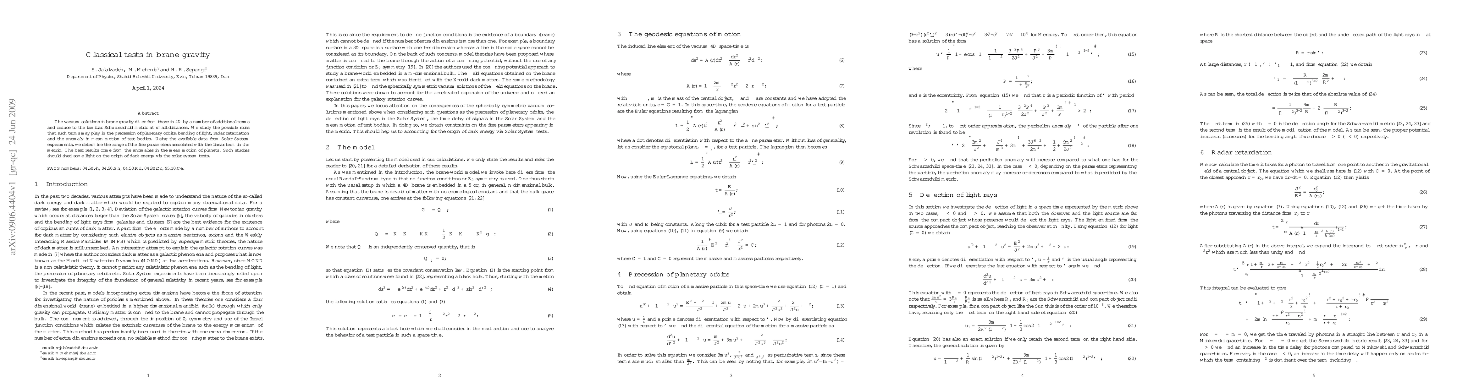 The vacuum solutions in brane gravity differ from those in 4D by a number of additional terms and reduce to the familiar Schwarzschild metric at small distances. We study the possible roles that such terms may play in the precession of planetary orbits, bending of light, radar retardation and the anomaly in mean motion of test bodies. Using the available data from Solar System experiments, we determine the range of the free parameters associated with the linear term in the metric. The best results come from the anomalies in the mean motion of planets. Such studies should shed some light on the origin of dark energy via the solar system tests.