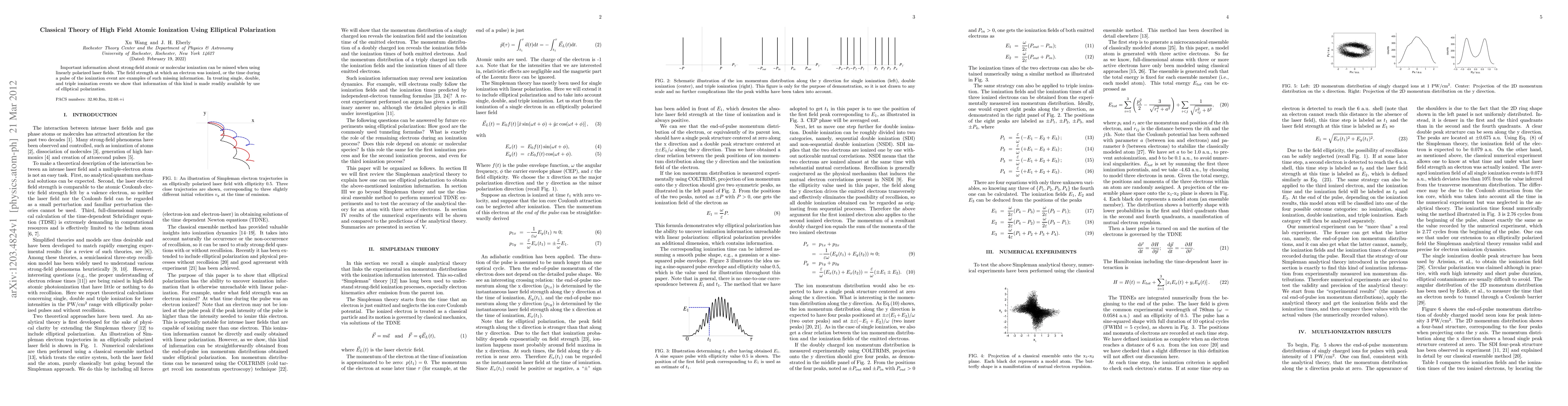 The extension of the Simpleman analytical theory to include elliptical polarization and predict links between ion momentum distributions and ionization fields and times of emitted electrons.