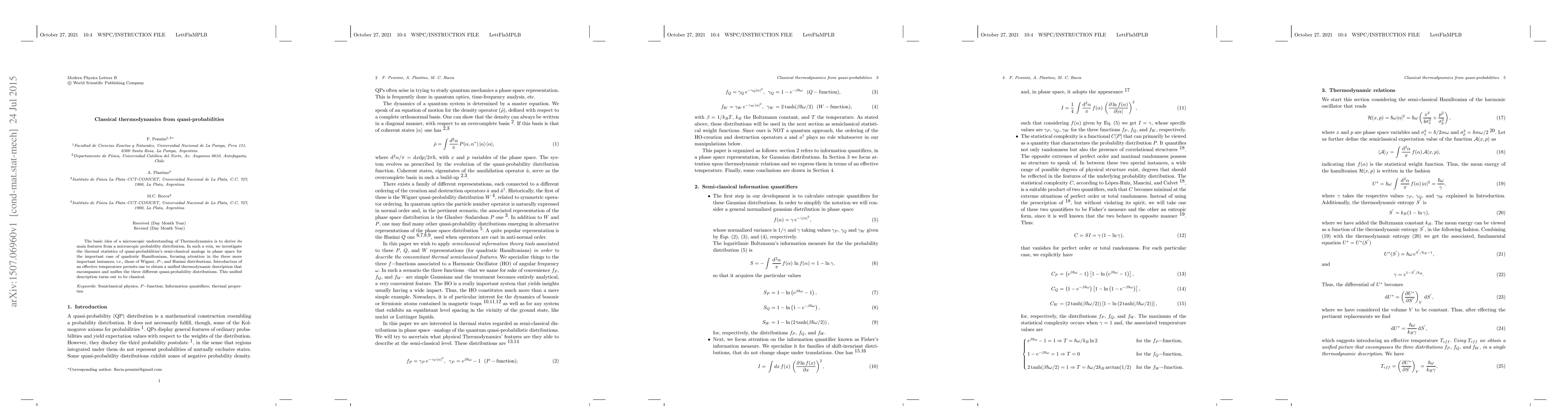 The basic idea of a microscopic understanding of Thermodynamics is to derive its main features from a microscopic probability distribution. In such a vein, we investigate the thermal statistics of quasi-probabilities's semi-classical analogs in phase space for the important case of quadratic Hamiltonians, focusing attention in the three more important instances, i.e., those of Wigner, $P$-, and Husimi distributions. Introduction of an effective temperature permits one to obtain a unified thermodynamic description that encompasses and unifies the three different quasi-probability distributions. This unified description turns out to be classical.