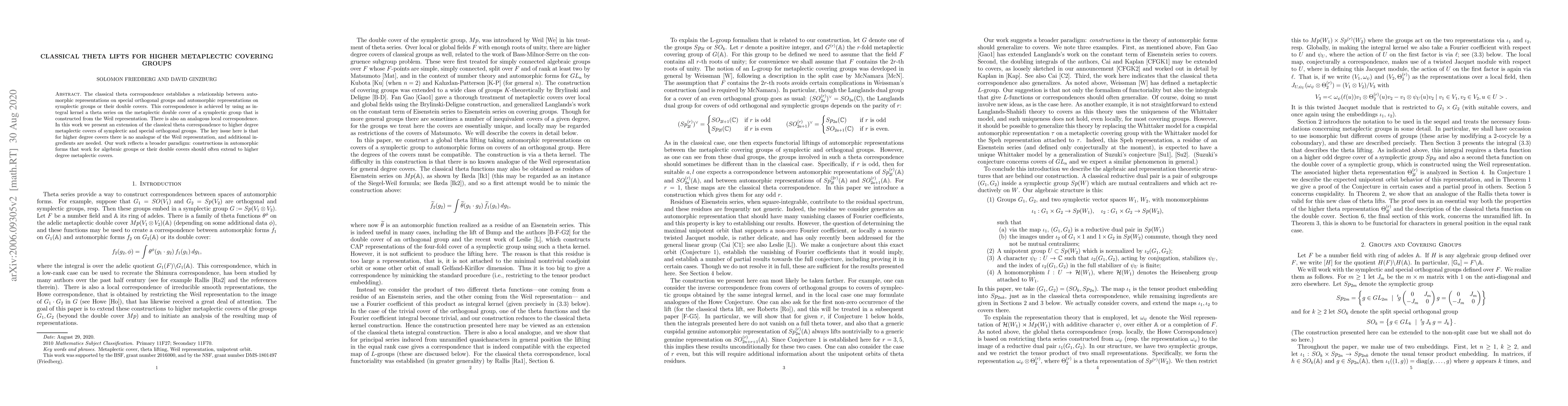 This paper extends the classical theta correspondence to higher degree metaplectic covers of symplectic and special orthogonal groups, addressing the lack of a Weil representation analogue for higher covers and introducing new ingredients for the construction. The work supports the broader idea that automorphic forms constructions for algebraic groups often extend to higher metaplectic covers.