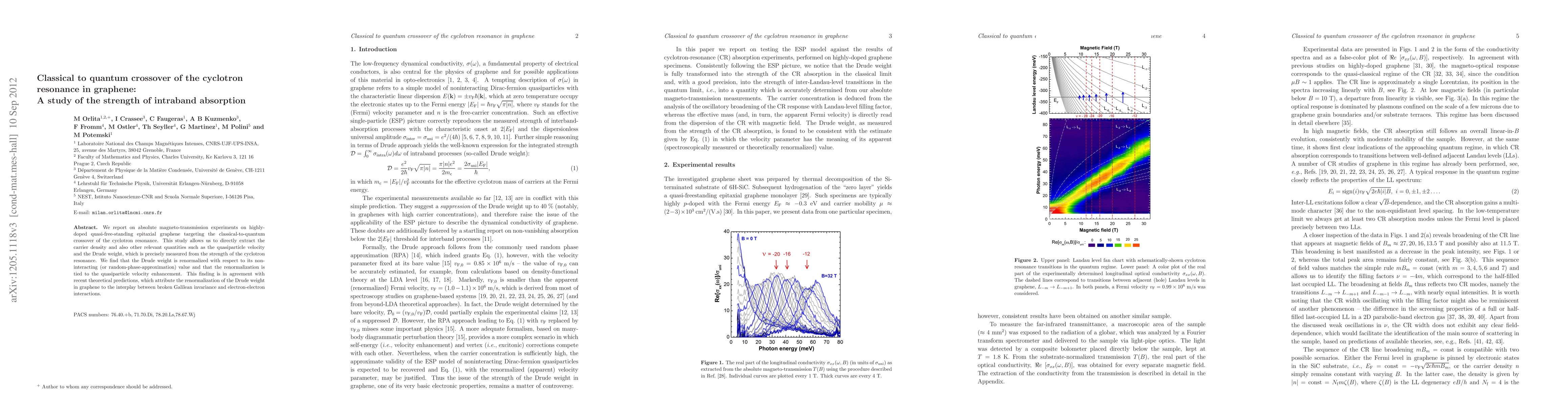 This research investigates the classical-to-quantum crossover in cyclotron resonance of highly-doped graphene, revealing a renormalization of the Drude weight tied to electron-electron interactions and enhanced quasiparticle velocity, aligning with theoretical predictions.
