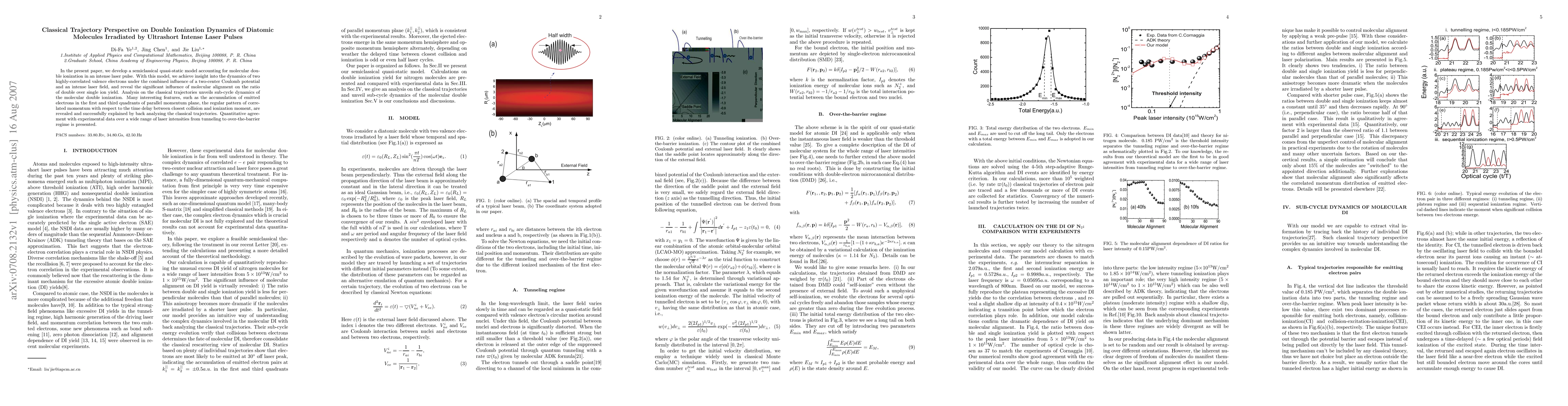 This paper develops a semiclassical model to study double ionization in diatomic molecules under intense laser pulses, revealing the impact of molecular alignment on ionization yields and unveiling sub-cycle dynamics through classical trajectory analysis, with quantitative agreement with experimental data.
