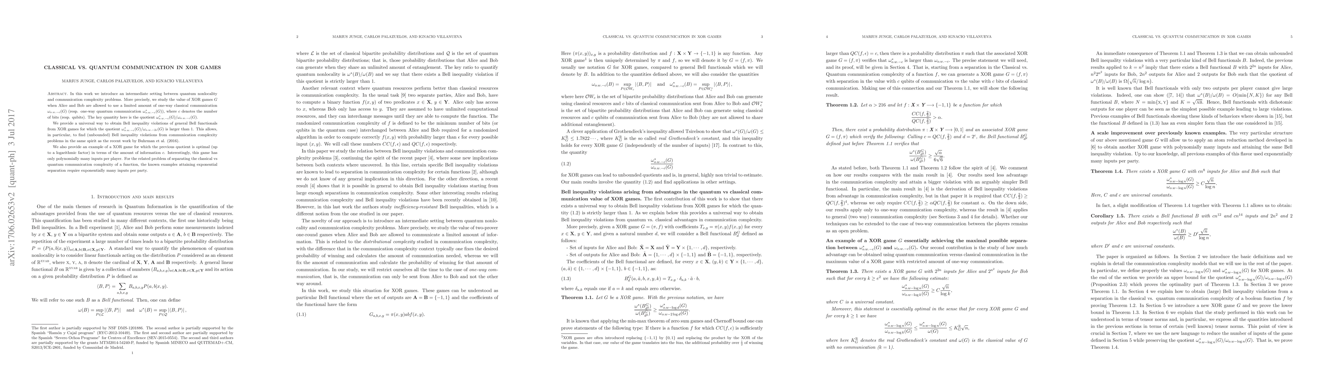 In this work we introduce an intermediate setting between quantum nonlocality and communication complexity problems. More precisely, we study the value of XOR games $G$ when Alice and Bob are allowed to use a limited amount of one-way classical communication $\omega_{o.w.-c}(G)$ (resp. one-way quantum communication $\omega_{o.w.-c}^*(G)$), where $c$ denotes the number of bits (resp. qubits). The key quantity here is the quotient $\omega_{o.w.-c}^*(G)/\omega_{o.w.-c}(G)$. We provide a universal way to obtain Bell inequality violations of general Bell functionals from XOR games for which the quotient $\omega_{o.w.-c}^*(G)/\omega_{o.w.-2c}(G)$ is larger than 1. This allows, in particular, to find (unbounded) Bell inequality violations from communication complexity problems in the same spirit as the recent work by Buhrman et al. (2016). We also provide an example of a XOR game for which the previous quotient is optimal (up to a logarithmic factor) in terms of the amount of information $c$. Interestingly, this game has only polynomially many inputs per player. For the related problem of separating the classical vs quantum communication complexity of a function, the known examples attaining exponential separation require exponentially many inputs per party.
