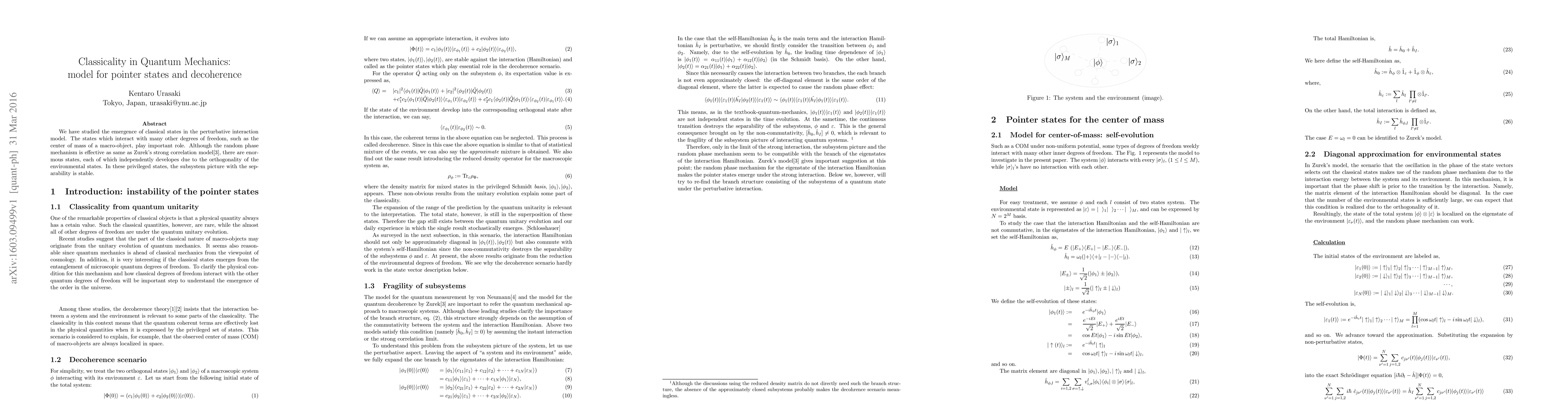 We have studied the emergence of classical states in the perturbative interaction model. The states which interact with many other degrees of freedom, such as the center of mass of a macro-object, play important role. Although the random phase mechanism is effective as same as Zurek's strong correlation model, there are enormous states, each of which independently developes due to the orthogonality of the environmental states. In these privileged states, the subsystem picture with the separability is stable.