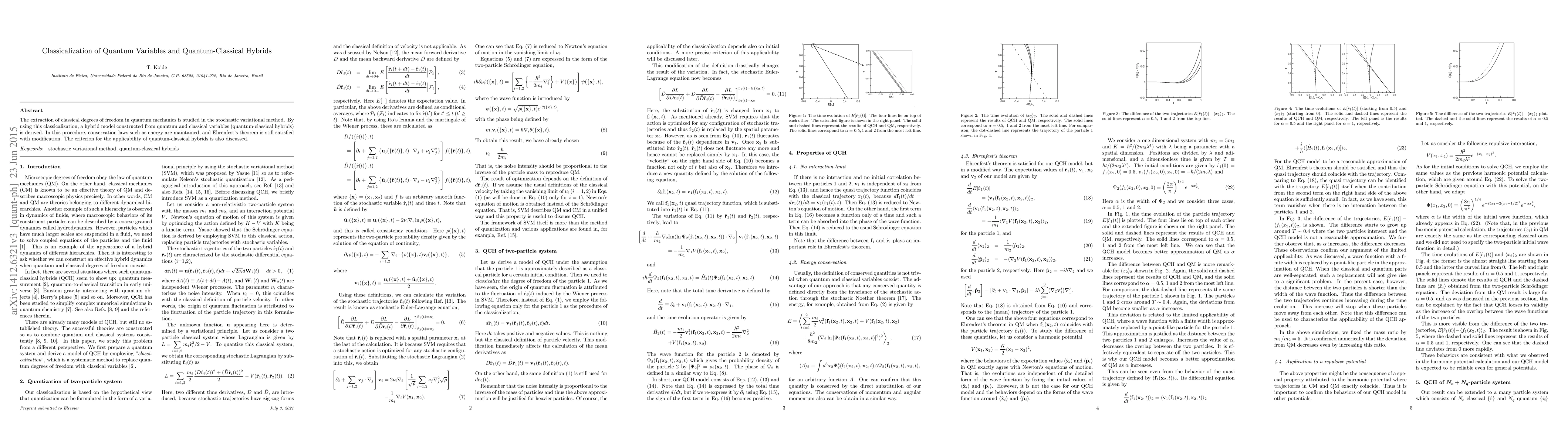 This paper explores the classicalization of quantum variables using the stochastic variational method, leading to the development of quantum-classical hybrid models that maintain conservation laws and modified Ehrenfest's theorem. The study also discusses the criteria for the applicability of these hybrid models.