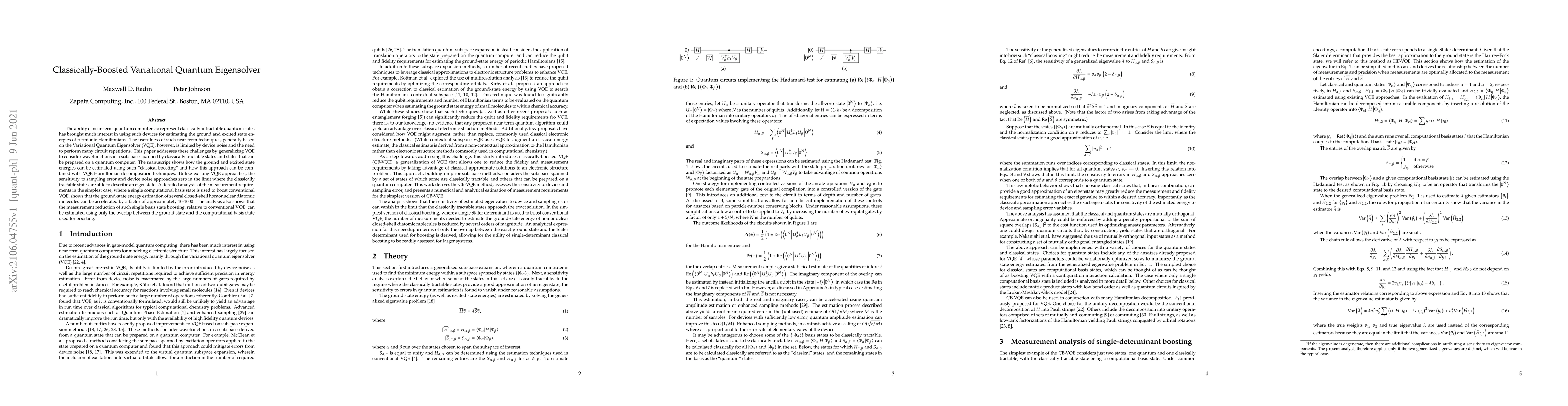 The ability of near-term quantum computers to represent classically-intractable quantum states has brought much interest in using such devices for estimating the ground and excited state energies of fermionic Hamiltonians. The usefulness of such near-term techniques, generally based on the Variational Quantum Eigensolver (VQE), however, is limited by device noise and the need to perform many circuit repetitions. This paper addresses these challenges by generalizing VQE to consider wavefunctions in a subspace spanned by classically tractable states and states that can be prepared on a quantum computer. The manuscript shows how the ground and excited state energies can be estimated using such "classical-boosting" and how this approach can be combined with VQE Hamiltonian decomposition techniques. Unlike existing VQE approaches, the sensitivity to sampling error and device noise approaches zero in the limit where the classically tractable states are able to describe an eigenstate. A detailed analysis of the measurement requirements in the simplest case, where a single computational basis state is used to boost conventional VQE, shows that the ground-state energy estimation of several closed-shell homonuclear diatomic molecules can be accelerated by a factor of approximately 10-1000. The analysis also shows that the measurement reduction of such single basis state boosting, relative to conventional VQE, can be estimated using only the overlap between the ground state and the computational basis state used for boosting.