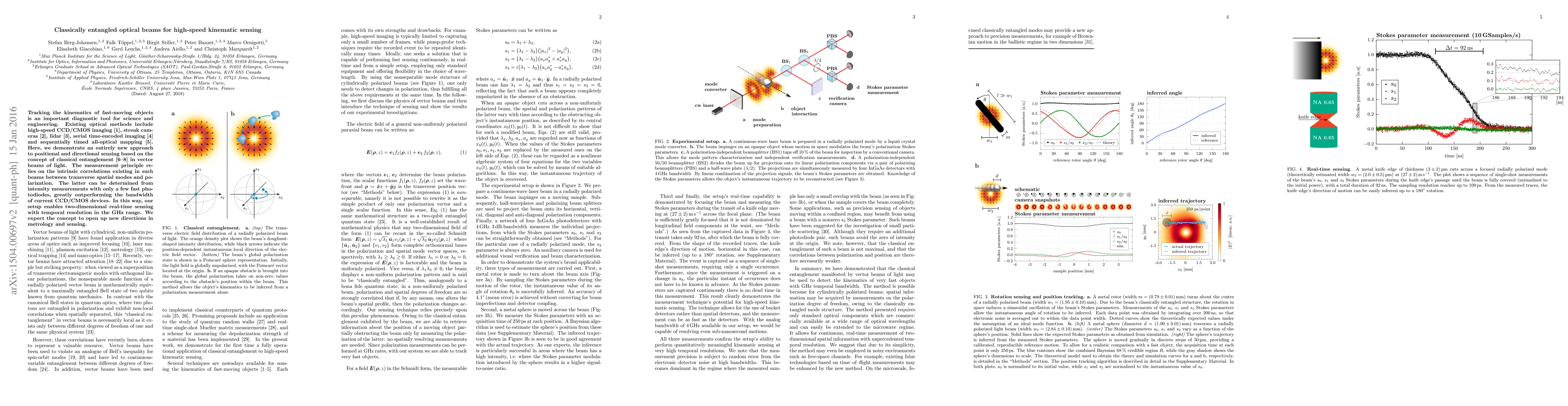 This paper introduces a novel method for high-speed kinematic sensing using classically entangled optical beams, leveraging intrinsic correlations between spatial modes and polarization. The approach enables real-time, two-dimensional sensing with GHz-range temporal resolution, surpassing current CCD/CMOS devices.