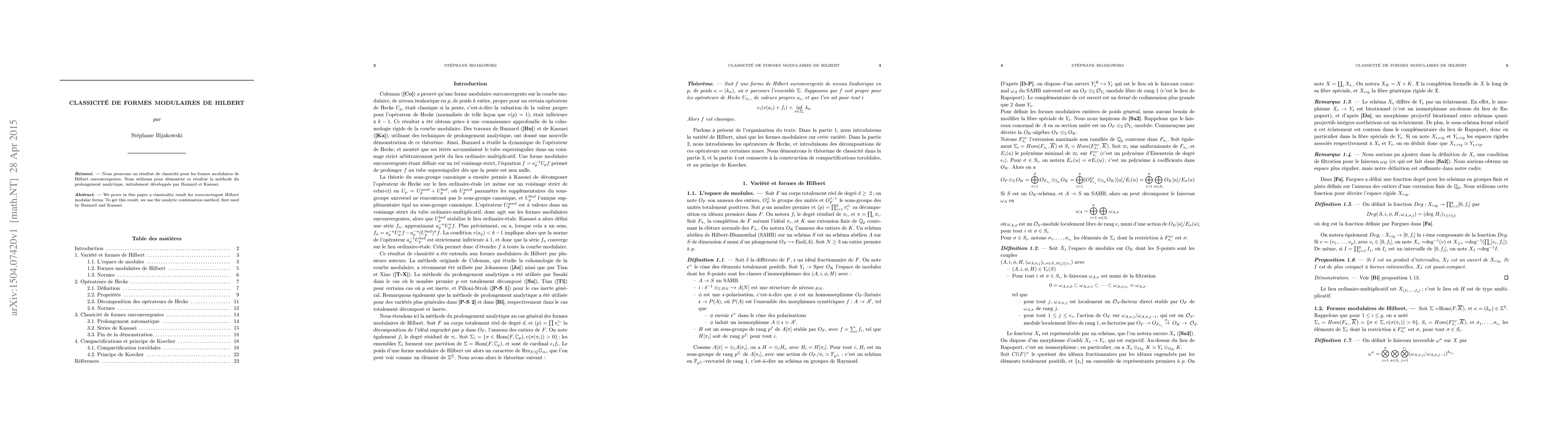 The paper introduces a novel approach to proving classicality for overconvergent Hilbert modular forms using analytic continuation, extending previous work by Buzzard and Kassaei.