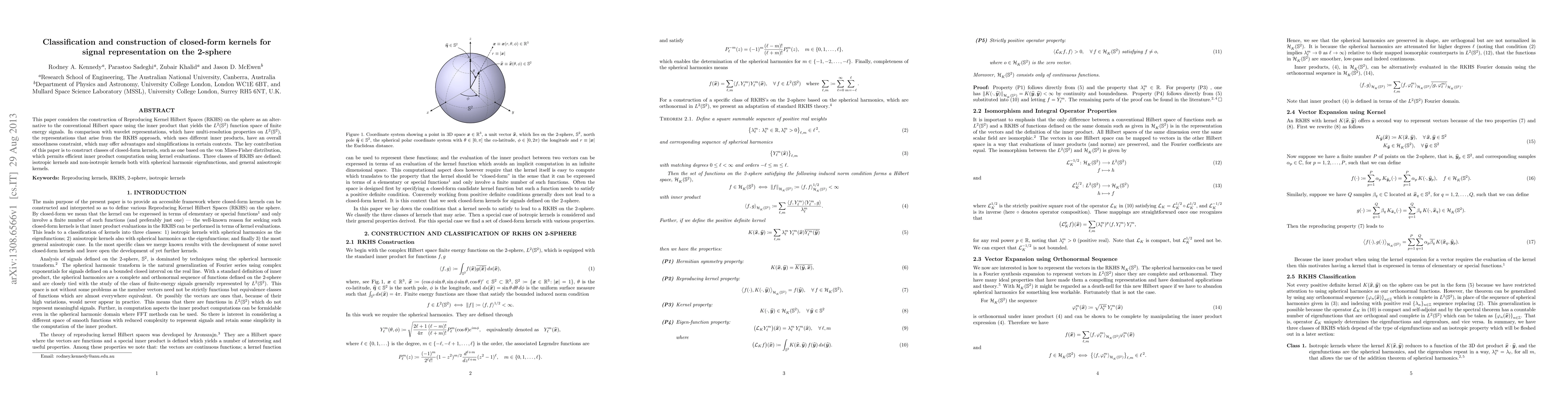 This paper considers the construction of Reproducing Kernel Hilbert Spaces (RKHS) on the sphere as an alternative to the conventional Hilbert space using the inner product that yields the L^2(S^2) function space of finite energy signals. In comparison with wavelet representations, which have multi-resolution properties on L^2(S^2), the representations that arise from the RKHS approach, which uses different inner products, have an overall smoothness constraint, which may offer advantages and simplifications in certain contexts. The key contribution of this paper is to construct classes of closed-form kernels, such as one based on the von Mises-Fisher distribution, which permits efficient inner product computation using kernel evaluations. Three classes of RKHS are defined: isotropic kernels and non-isotropic kernels both with spherical harmonic eigenfunctions, and general anisotropic kernels.