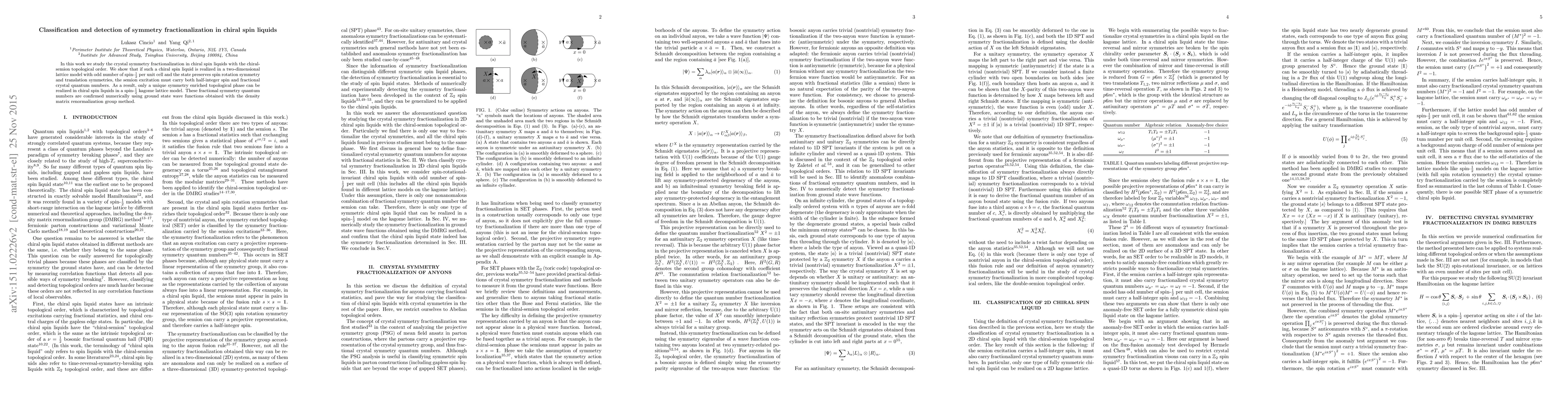 This paper explores the symmetry fractionalization in chiral spin liquids with chiral-semion topological order, proving that semion excitations must carry both half-integer spin and fractional crystal quantum numbers, leading to a unique symmetry enriched topological phase in spin-$\frac{1}{2}$ kagome lattice models, verified numerically via density matrix renormalization group methods.