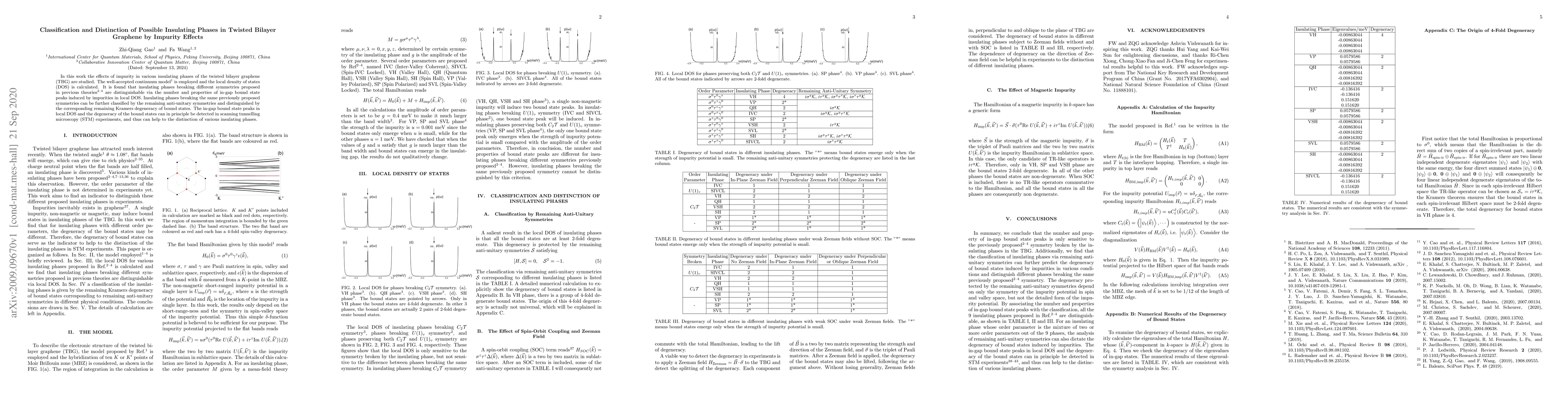 In this work the effects of impurity in various insulating phases of the twisted bilayer graphene (TBG) are studied. The well-accepted continuum model\cite{b} is employed and the local density of states (DOS) is calculated. It is found that insulating phases breaking different symmetries proposed in previous theories\cite{pa,op1,Lee_2019} are distinguishable via the number and properties of in-gap bound state peaks induced by impurities in local DOS. Insulating phases breaking the same previously proposed symmetries can be further classified by the remaining anti-unitary symmetries and distinguished by the corresponding remaining Kramers degeneracy of bound states. The in-gap bound state peaks in local DOS and the degeneracy of the bound states can in principle be detected in scanning tunnelling microscopy (STM) experiments, and thus can help to the distinction of various insulating phases.