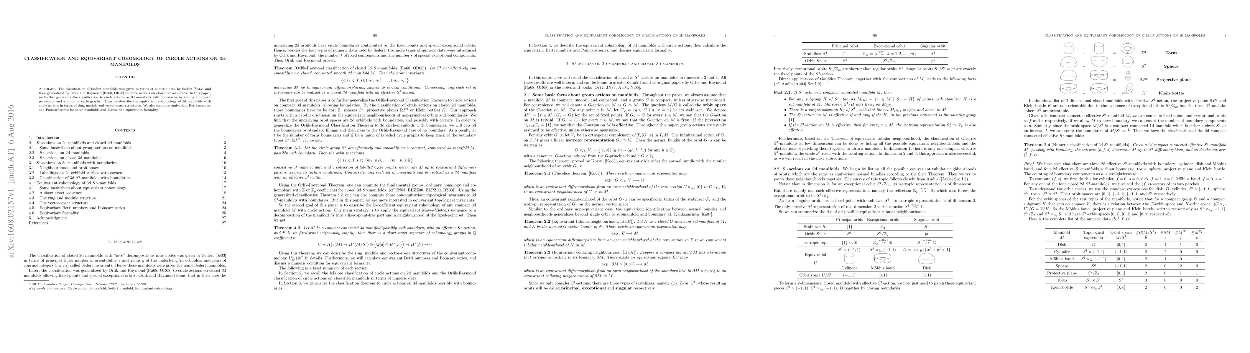 This paper generalizes the classification of Seifert manifolds to circle actions on 3D manifolds with boundaries, introducing new numeric parameters and cycle graphs. It also explores the equivariant cohomology, detailing ring, module, and vector-space structures, and computes equivariant Betti numbers and Poincaré series.